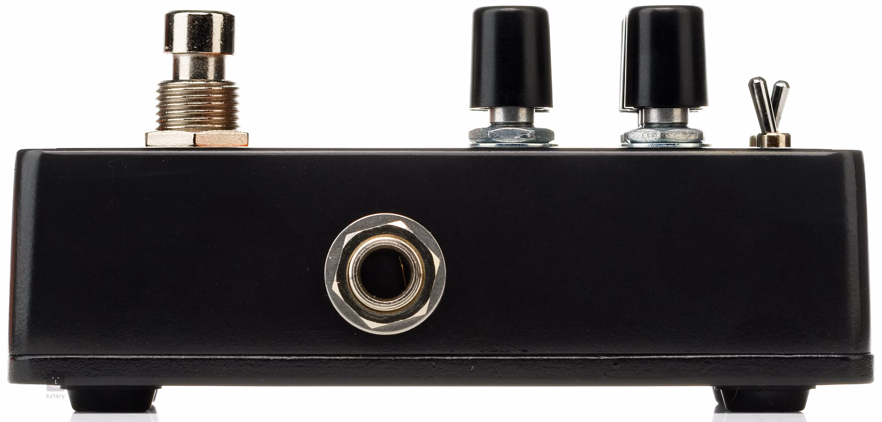 Der Effekt verfügt außerdem über einen umschaltbaren True-Bypass-Modus und ist mit einem Fußschalter mit wählbarer Latching-/Momentary-Funktion ausgestattet, mit dem Sie den Effekt ein- und ausschalten oder alternativ nur dann auslösen können, wenn Sie den Fußschalter gedrückt halten. Das Pedal wird mit einem standardmäßigen 9-V-Netzteil oder einer 9-V-Batterie betrieben. Die gesamte Elektronik ist in einem robusten Metallgehäuse untergebracht, das in Schwarz oder Orange erhältlich ist.
