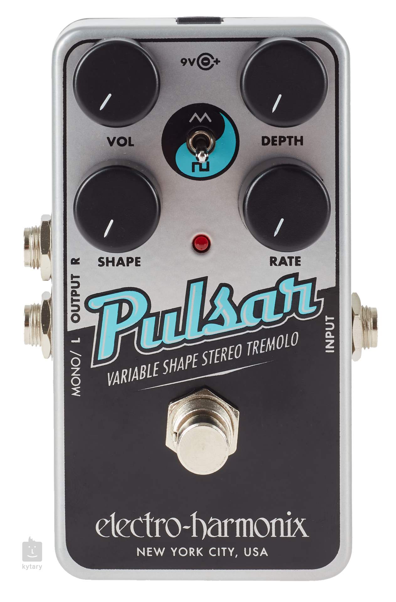 Die gesamte Elektronik ist in einem Metallgehäuse untergebracht. Dank des Stereoausgangs lassen sich spektakuläre Panning-Effekte erzeugen, die den Raum mit pulsierender Energie füllen. Der Pedaleffekt ist als gepufferter Bypass verdrahtet. Zur Stromversorgung wird ein 9V-Adapter oder eine 9V-Batterie benötigt (Adapter nicht im Lieferumfang enthalten).