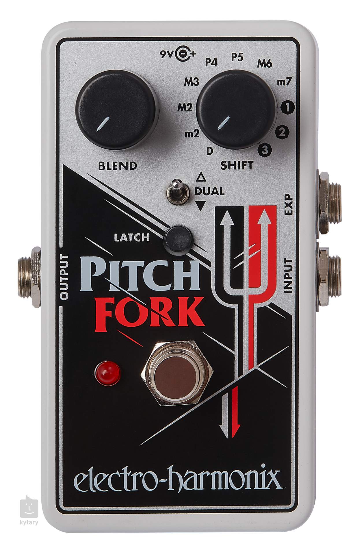 Der Pitch Fork Pedal-Effekt von Electro-Harmonix (EHX) kann die Stimmung eines Instruments über einen Bereich von drei Oktaven (+/-) transponieren und bietet dabei drei Modi, die es erlauben, die Stimmung nach oben, unten und in beide Richtungen gleichzeitig zu verändern, um beeindruckende Soundeffekte zu erzeugen. Das gewünschte Intervall für die Stimmungsveränderung kann fest eingestellt werden, oder die Stimmung kann kontinuierlich mit beeindruckenden Glissandi verändert werden, wenn das Expression-Pedal (nicht im Lieferumfang enthalten) betätigt wird.