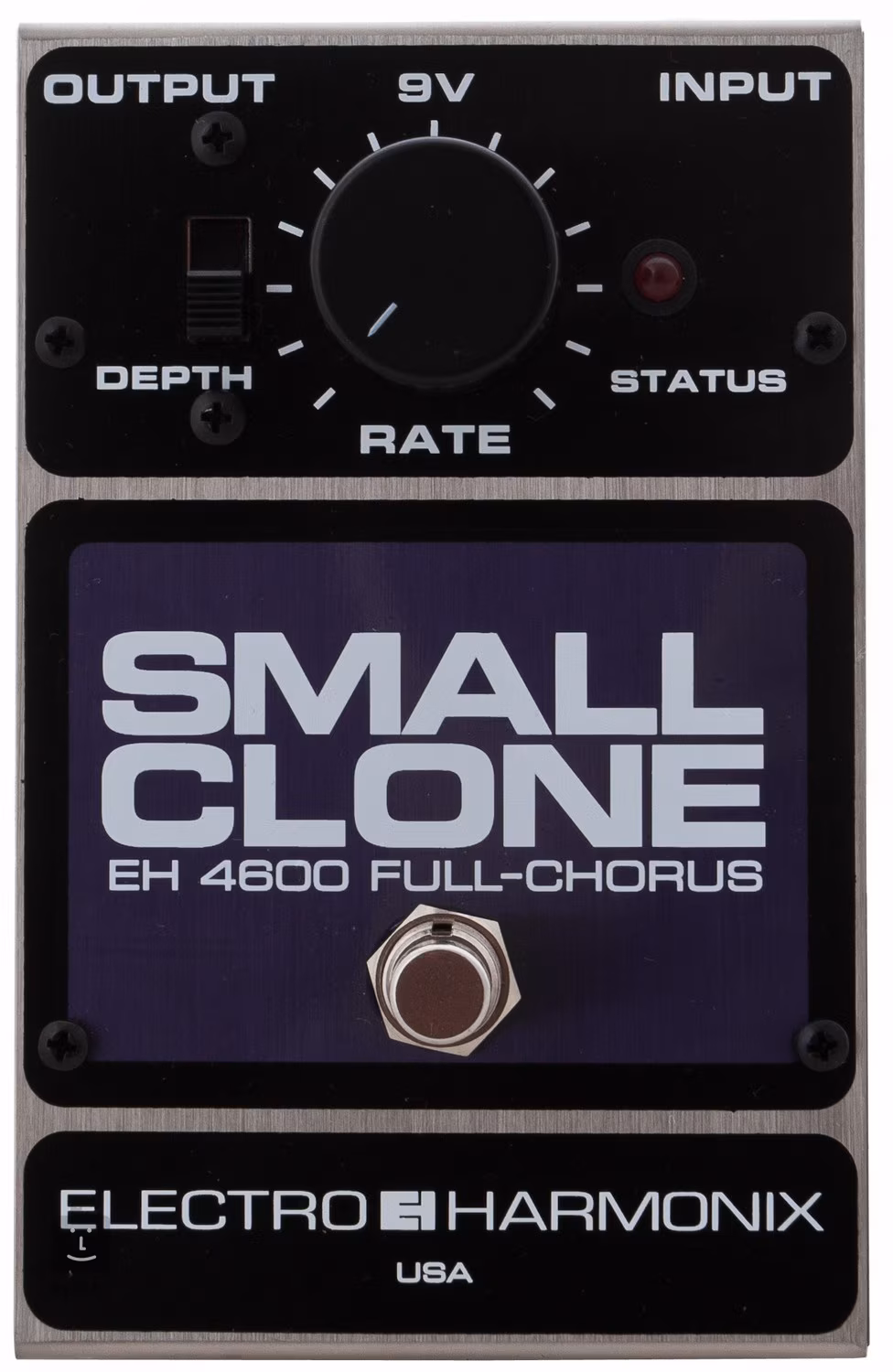 Der EHX Small Clone ist ein klassisches analoges Chorus-Pedal, das von Curt Cobain und anderen Gitarristen populär gemacht wurde. Es ist ein typischer Chorus, der das Gitarrensignal "klont", die Frequenz dieser Kopien ein wenig verändert und sie dem Originalsignal wieder hinzufügt. Dadurch entsteht der charakteristische räumliche Effekt der Verdopplung der Gitarrenlinien. Mit dem Rate-Regler bestimmen Sie, wie schnell der Chorus "oszilliert", und mit dem Depth-Schalter können Sie die Intensität der Effektmodulation einstellen. Mit dem Pedal lassen sich sowohl klassische, warme Chorus-Effekte als auch ausgeprägtere Modulationen erzeugen, wie sie z.B. von den rotierenden Lautsprechern der Leslie-Box erzeugt werden.