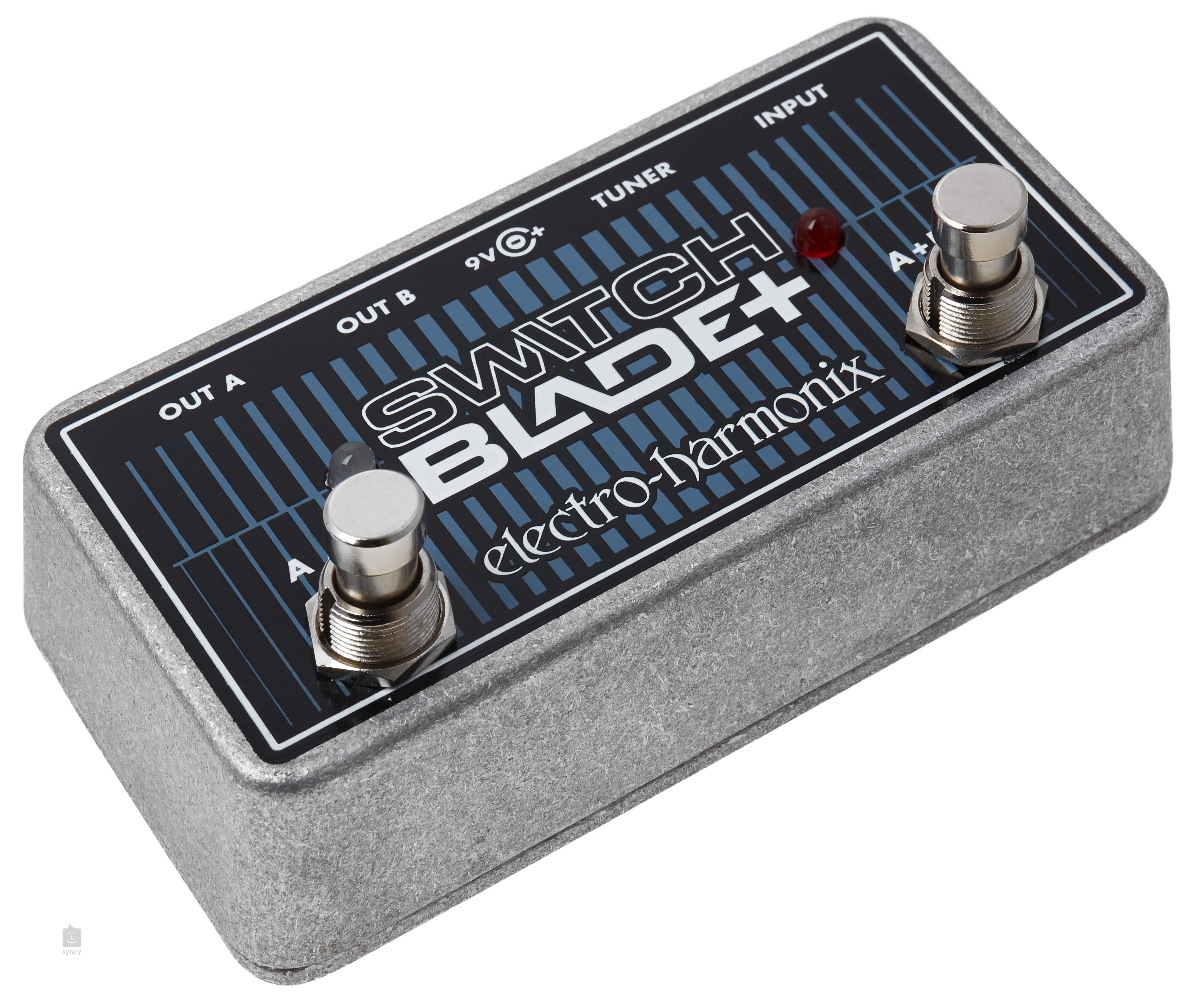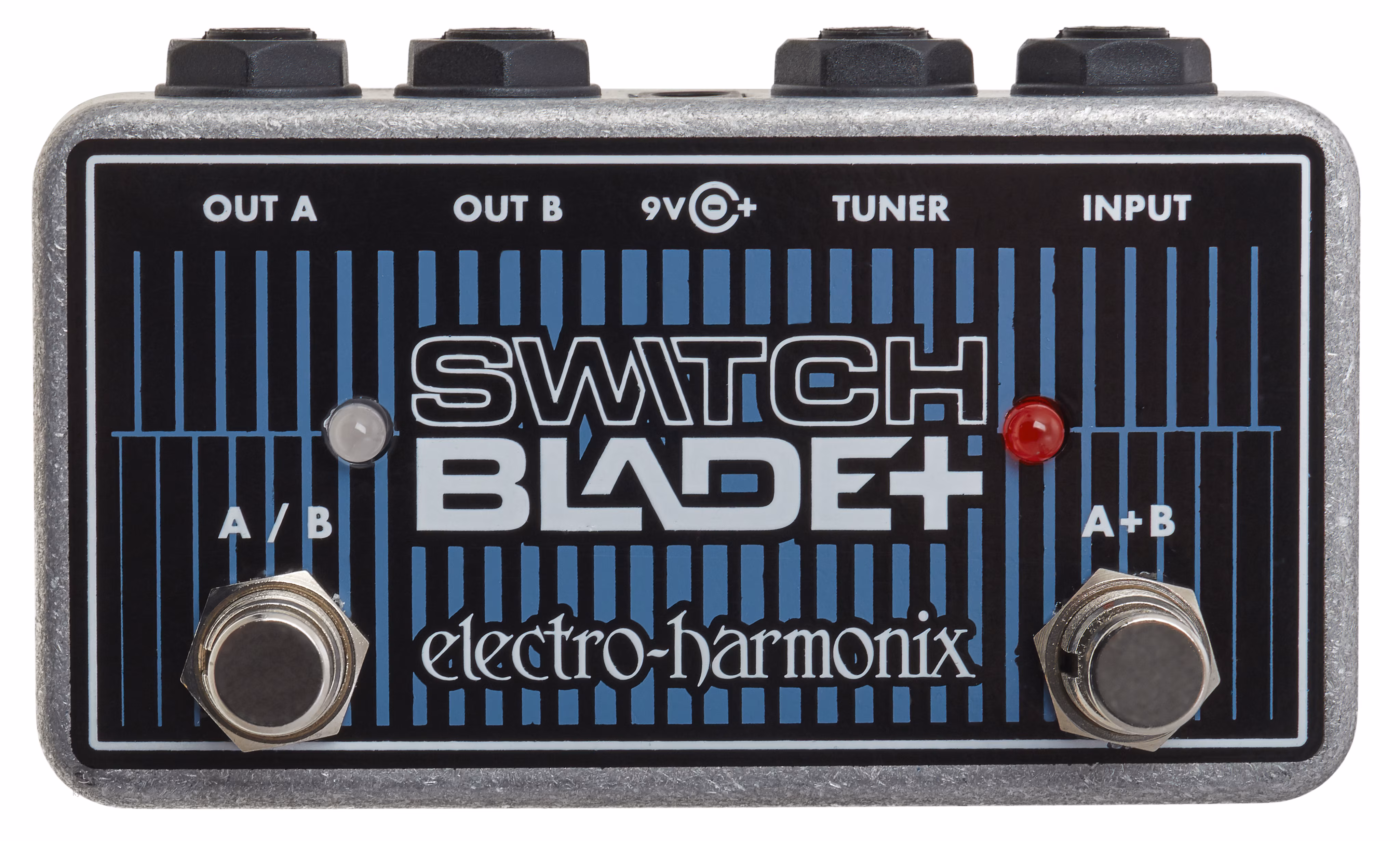Das EHX Switchblade Plus bietet die Möglichkeit, zwischen den Ausgängen A/B umzuschalten oder sie gleichzeitig A+B zu nutzen. Sie können Ihre Gitarre an zwei Instrumente anschließen und schnell zwischen ihnen umschalten oder beide gleichzeitig verwenden. Der Switcher verfügt auch über einen Tuner-Eingang.