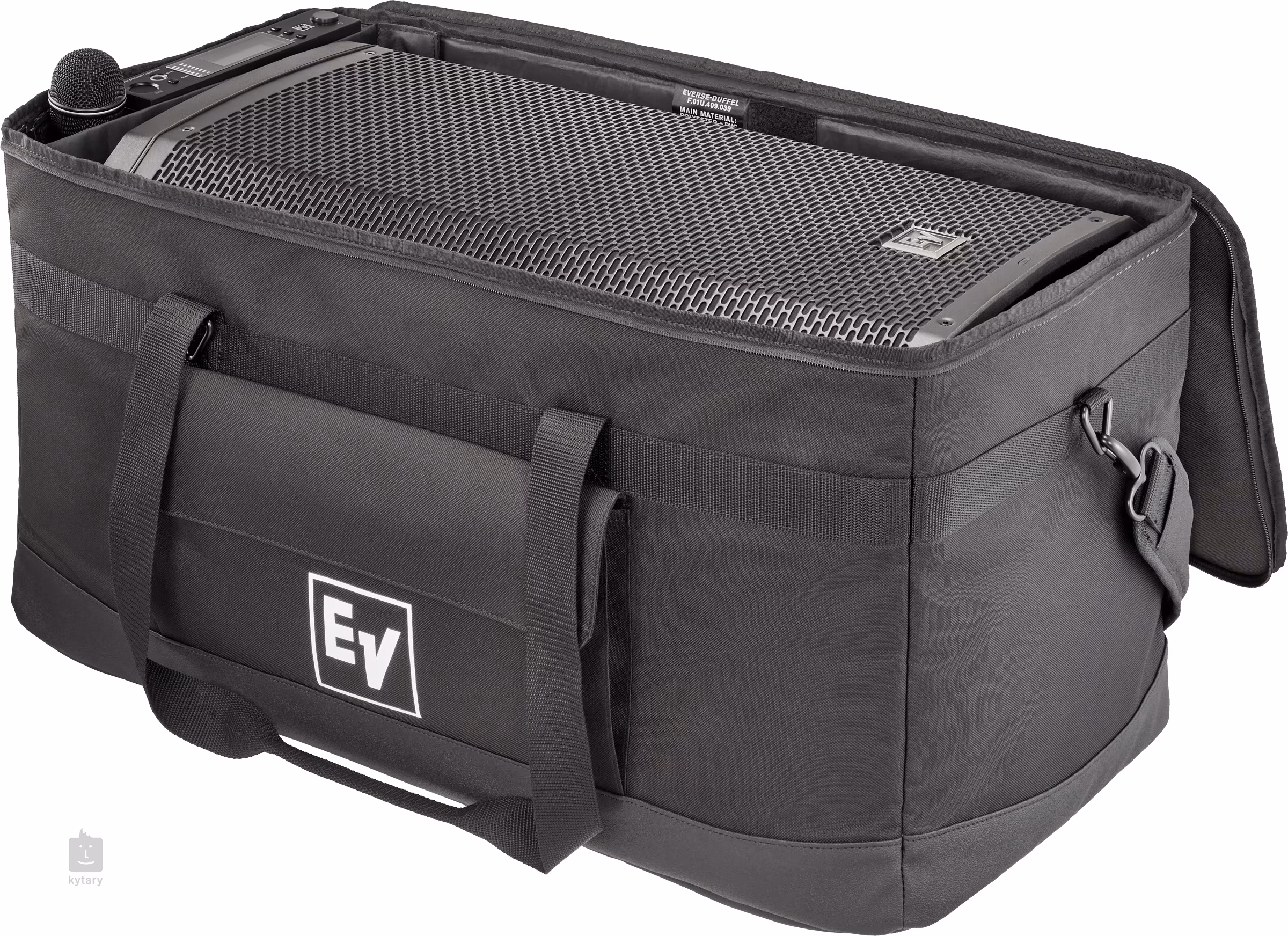 Die gepolsterte Tasche EVERSE DUFFEL von Electro-Voice bietet Platz für einen EVERSE 12 oder zwei EVERSE 8 Lautsprecher und deren Zubehör. Die beiden integrierten Trennwände können je nach Bedarf verstellt oder weggeklappt werden. Zwei Kordelzugbänder sichern den Inhalt während des Transports.