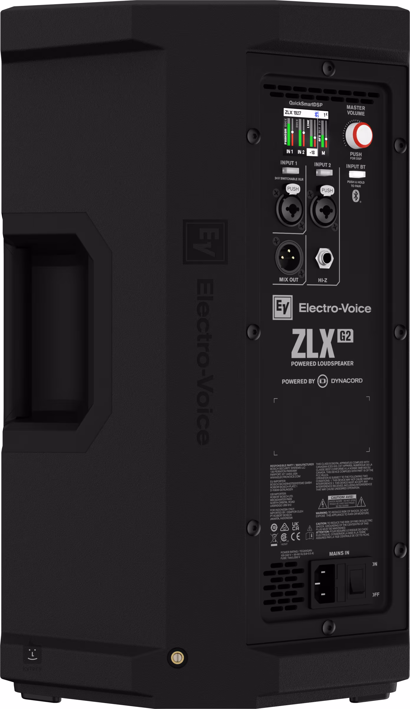 Die ZLX-G2-Lautsprecher sind mit den High-End-Verstärkern von DYNACORD und einer internen DSP-Einheit ausgestattet, die den digitalen Mix, die FX-Einheit, den EQ, den Auto-Feedback-Suppression-Filter (AFS) und die Ducking-Funktion übernimmt. Der Lautsprecher verfügt über zwei Eingangskanäle mit kombinierten XLR/Klinke 6,3 mm TRS-Anschlüssen, einschließlich +24V Phantomspeisung für Kondensatormikrofone und Kompatibilität mit hochohmigen Quellen (Hi-Z).