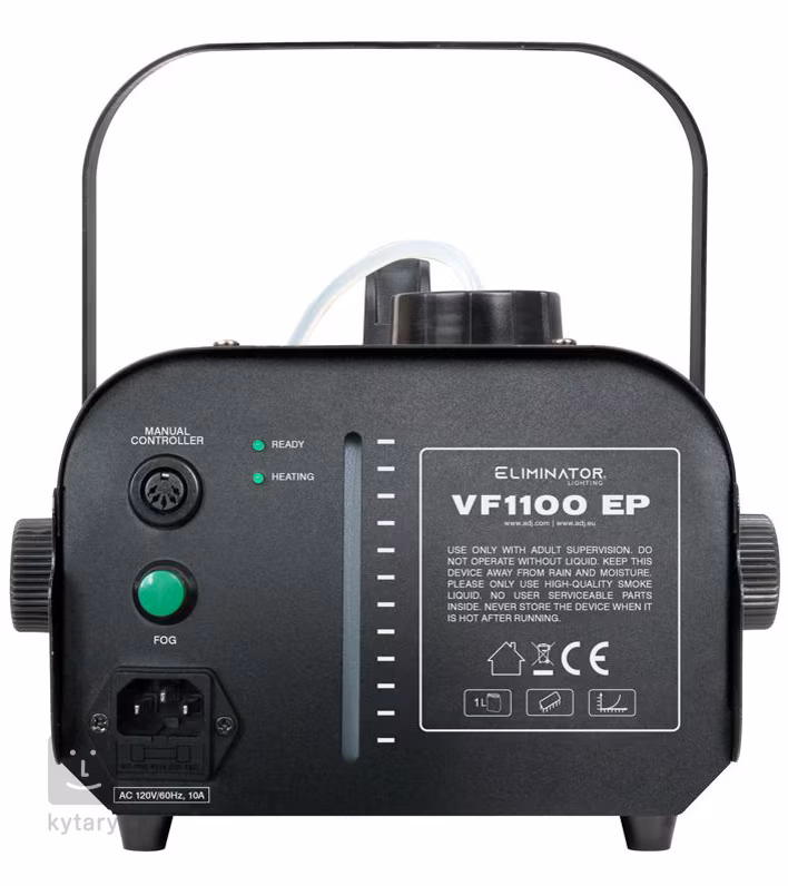 Das Fassungsvermögen des Flüssigkeitstanks beträgt 1 Liter. Zur Steuerung verwenden Sie entweder den kabellosen Controller VFEPWR oder den kabelgebundenen Controller VFEP5R - beide sind im Lieferumfang enthalten. Der Vorteil des Geräts ist auch sein geringes Gewicht (3 kg) und seine kompakten Abmessungen (341 x 252 x 261 mm). Als Füllung eignet sich jedes Nebelfluid auf Wasserbasis.