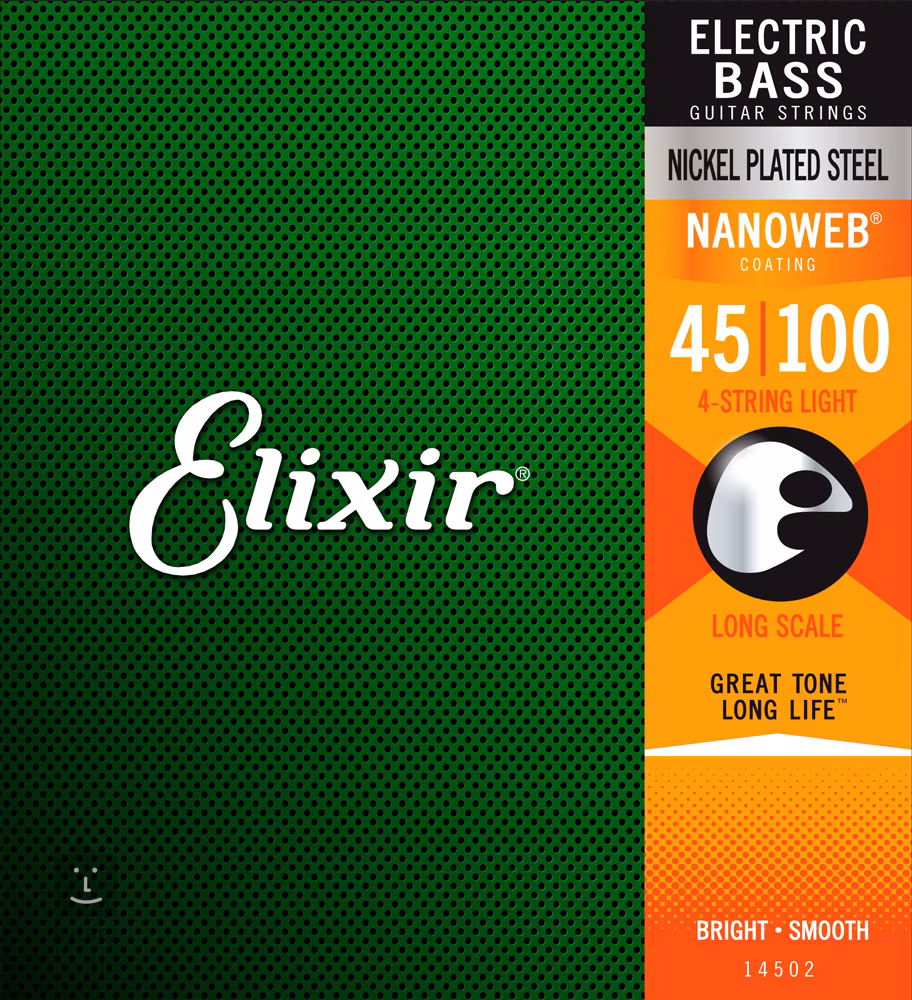 Elixir-Saiten sind für ihre extrem lange Lebensdauer bekannt, die nur schwer zu übertreffen ist. Dank einer speziellen Beschichtung sind sie korrosions-, feuchtigkeits-, schmutz- und schweißbeständig, sodass sie lange einen klaren und durchdringenden Ton behalten. In diesem Satz finden Sie Saiten, die mit vernickeltem Stahl umsponnen sind, was ihnen einen warmen und runden Klang verleiht. Sie sind mit einer schützenden Nanoweb-Beschichtung versehen, die sie extrem haltbar und glatter als herkömmliche Saiten macht und das Geräusch reduziert, das entsteht, wenn man mit den Fingern über die Saite fährt.
