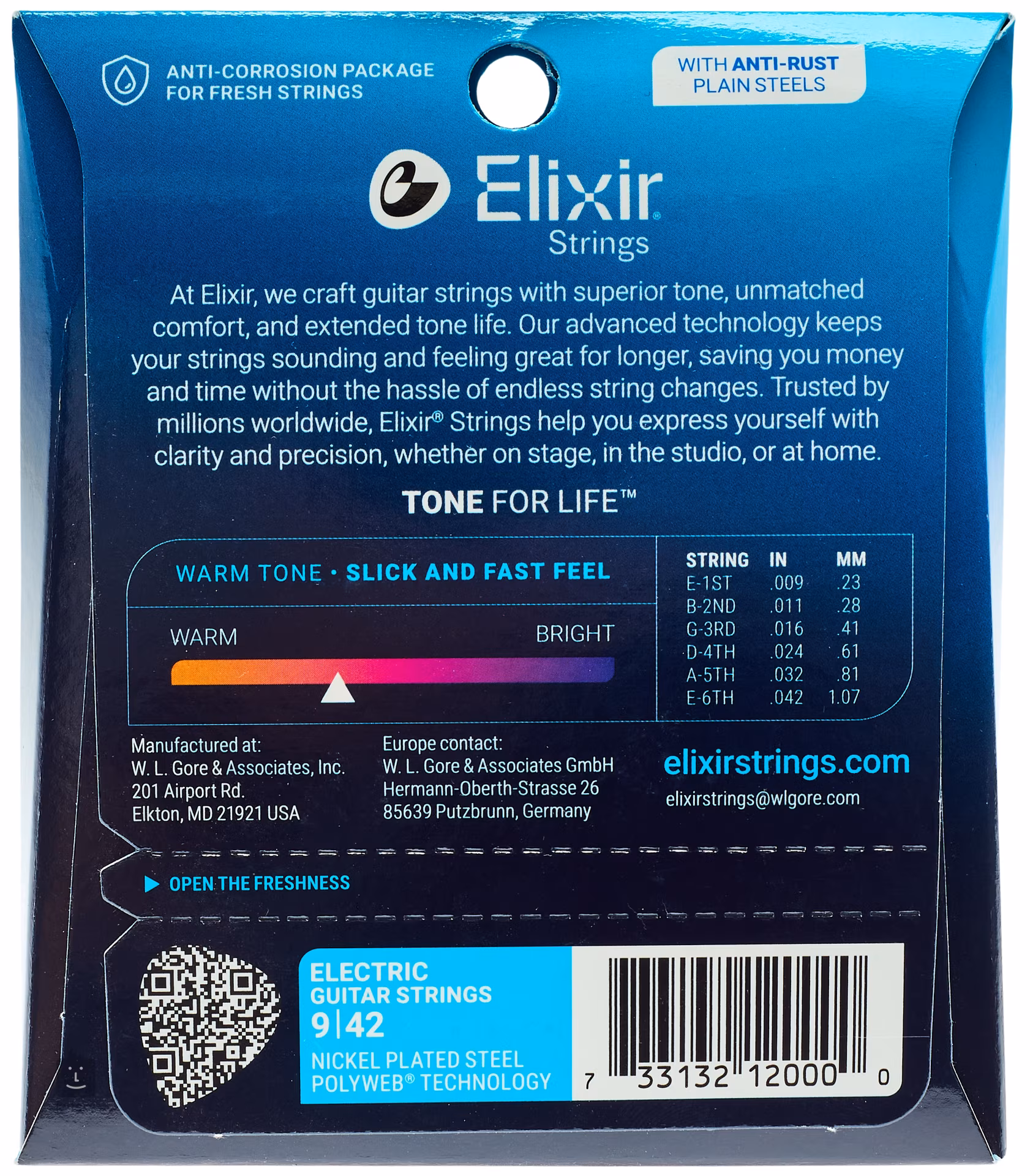 Elixir-Saiten sind bekannt für ihre extrem lange Lebensdauer, die kaum zu übertreffen ist. Dank ihrer speziellen Beschichtung sind sie korrosions-, feuchtigkeits-, schmutz- und schweißbeständig, sodass sie lange Zeit einen klaren und durchdringenden Klang behalten. Klanglich handelt es sich um sehr kräftige Saiten aus vernickeltem Stahl, die ordentlich Biss und Charakter haben. Dieses Set ist mit einer Polyweb-Schutzschicht überzogen, die die Saiten extrem widerstandsfähig und glatter als herkömmliche Saiten macht. Gleichzeitig dämpft sie sanft das Klingeln der Saiten und verleiht ihnen einen gedämpfteren und wärmeren Klang, ideal für Spieler, die einen runderen Klang bevorzugen.