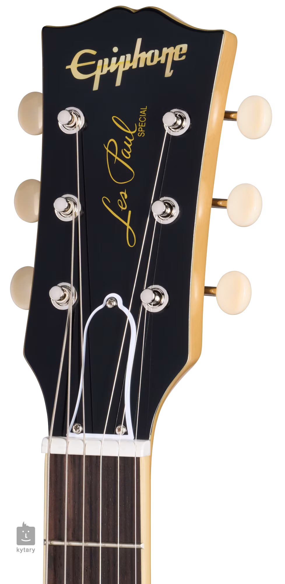 Zwei in den USA hergestellte P-90-Tonabnehmer im Soapbar-Design verleihen der Gitarre eine breite Palette von Tönen - von wunderbar sauber und warm bis hin zum Brüllen von dreckigem Rock und Rock 'n' Roll. Die Tonabnehmer sind von Hand mit den Potentiometern für Lautstärke und Tonblende verlötet. Eine Designänderung gegenüber den Modellen aus den 1950er Jahren ist die Platzierung der Tonabnehmer am unteren Hals. Die Saiten werden über einen Graphtech-Nullbund in Epiphone-Deluxe-Mechaniken und einem Wraparound-Saitenhalter aufgezogen. Die stilvolle Verarbeitung wird durch die Vintage-Glanzlackierung des Korpus, das traditionelle "Open Book"-Kopfplatten-Design, das fünflagige schwarze Schlagbrett und die Nickel-Hardware unterstrichen.