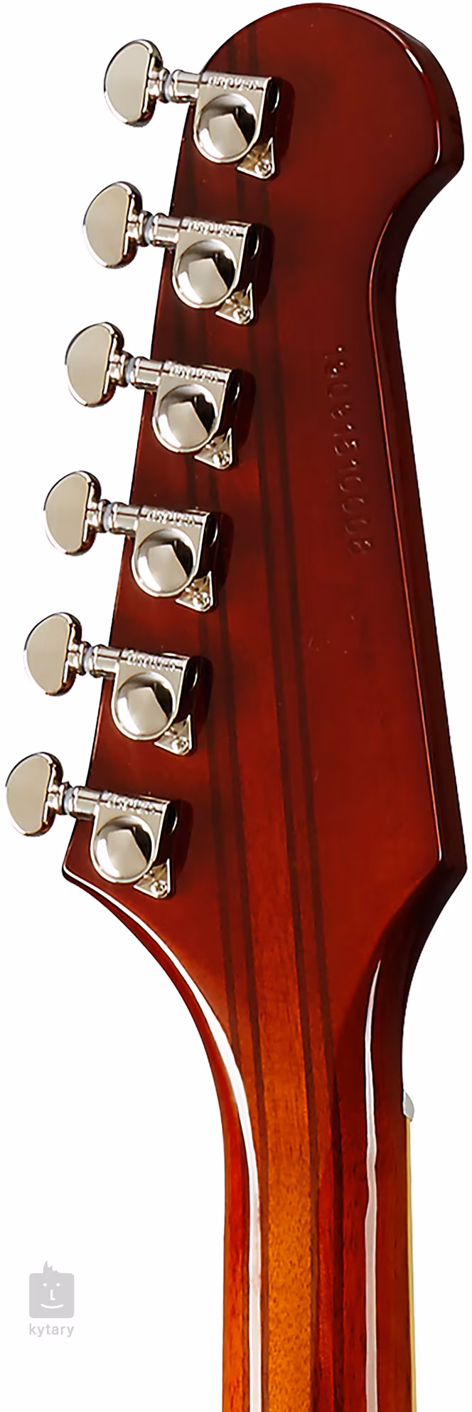 Die Saiten werden über einen Sattel aus Graphtech-Material in Grover Mini Rotomatic-Mechaniken sowie in einem Epiphone LockTone TOM-Steg und -Saitenhalter geführt. Die stilvolle Verarbeitung wird durch ein weißes dreischichtiges Schlagbrett mit aufgedrucktem rotem Firebird-Logo unterstrichen.