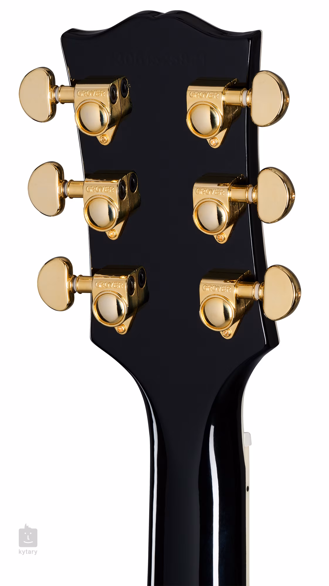 Eine stabile Stimmung wird durch die Montage der Saiten in Grover Rotomatic-Mechaniken mit einem Übersetzungsverhältnis von 18:1 und durch eine LockTone TOM-Saite in den Saitenreitern gewährleistet. Die stilvolle Verarbeitung wird durch das Perlmutt-Firmenlogo und die Split-Diamant-Einlage auf der Kopfplatte, das doppelseitige Korpusbinding, das schwarze fünflagige Schlagbrett und die goldene Hardware unterstrichen.