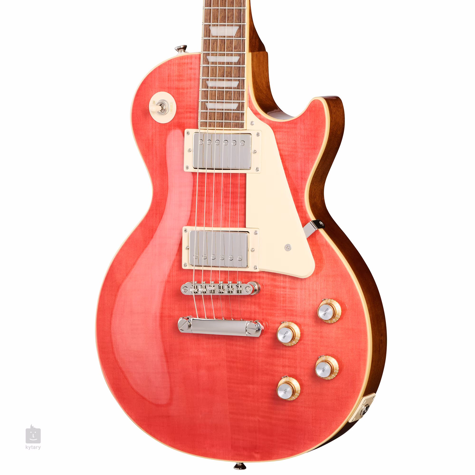 Der Korpus der Les Paul Standard 60s Figured Fuchsia E-Gitarre ist aus Okoumé (Gabun-Mahagoni) gefertigt und verfügt über eine AAA-Qualität gemaserte Ahorndecke. Der gemaserte Ahorn wird durch eine glänzende Lackierung akzentuiert. Der Mahagoni-Hals mit einem komfortablen und schnellen SlimTaper 60s "C"-Profil ist auf ein Feigengriffbrett mit zweiundzwanzig Medium Jumbo-Bünden geleimt. Positionierungsblöcke aus Perlmuttimitat erleichtern die Orientierung auf dem Griffbrett.