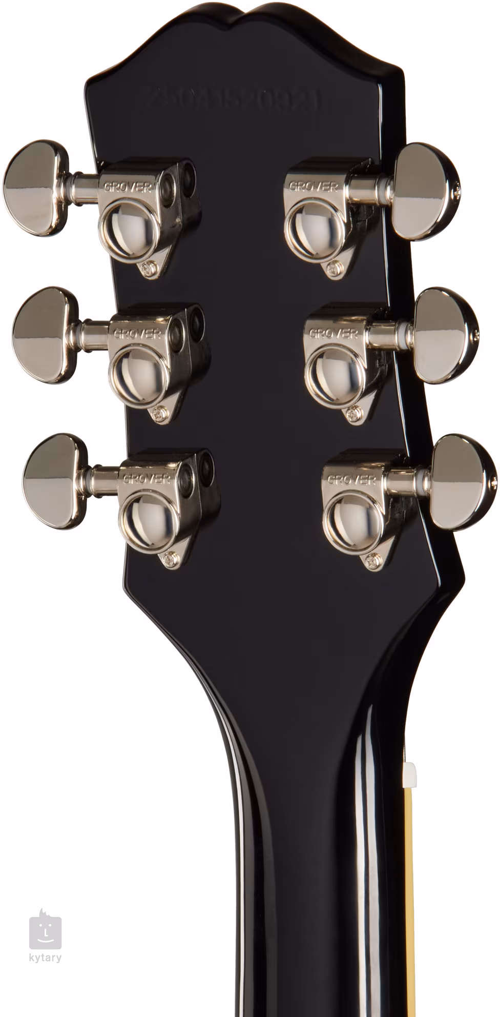 Die Saiten sind in hochwertigen Grover Rotomatic -Stimmmechaniken und über einen einstellbaren LockTone TOM-Steg im Saitenhalter befestigt. Das stilvolle Design wird durch die Griffbrettumrandung, das fünfschichtige schwarze Schlagbrett und das perlmuttfarbene Firmenlogo sowie das Gibson Crown-Inlay auf dem Kopf (Mother of Pearl) unterstrichen.