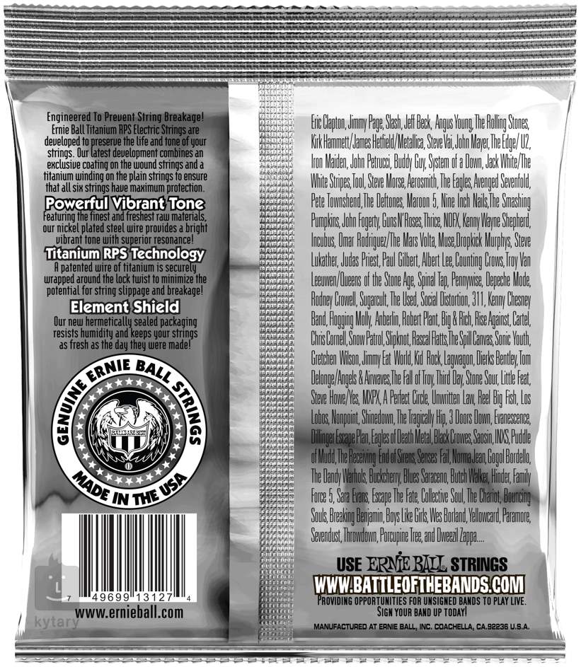 Die Saiten für E-Gitarren der Marke Ernie Ball aus der Serie Coated Titanium RPS sind die ideale Wahl für Musiker, die Saiten mit extrem langer Lebensdauer und hoher Stimmstabilität suchen. Ihr Geheimnis liegt in der Verwendung neuester Technologien, dank derer die Saiten maximal lange halten und selbst dem aggressivsten Spiel standhalten. Zunächst einmal sind sie mit einer speziellen Nanotechnologie beschichtet, die sie widerstandsfähig gegen Verschmutzungen und Korrosion macht. Die ungewickelten Saiten sind zusätzlich am Kugelende mit einem Titandraht umwickelt, der ihnen maximale Festigkeit, Widerstandsfähigkeit und präzise Stimmstabilität verleiht. Klanglich ähneln die Saiten der beliebten Slinky-Serie und bieten somit einen seit Jahren bewährten Klang, auf den Gitarristen seit mehr als 50 Jahren vertrauen.