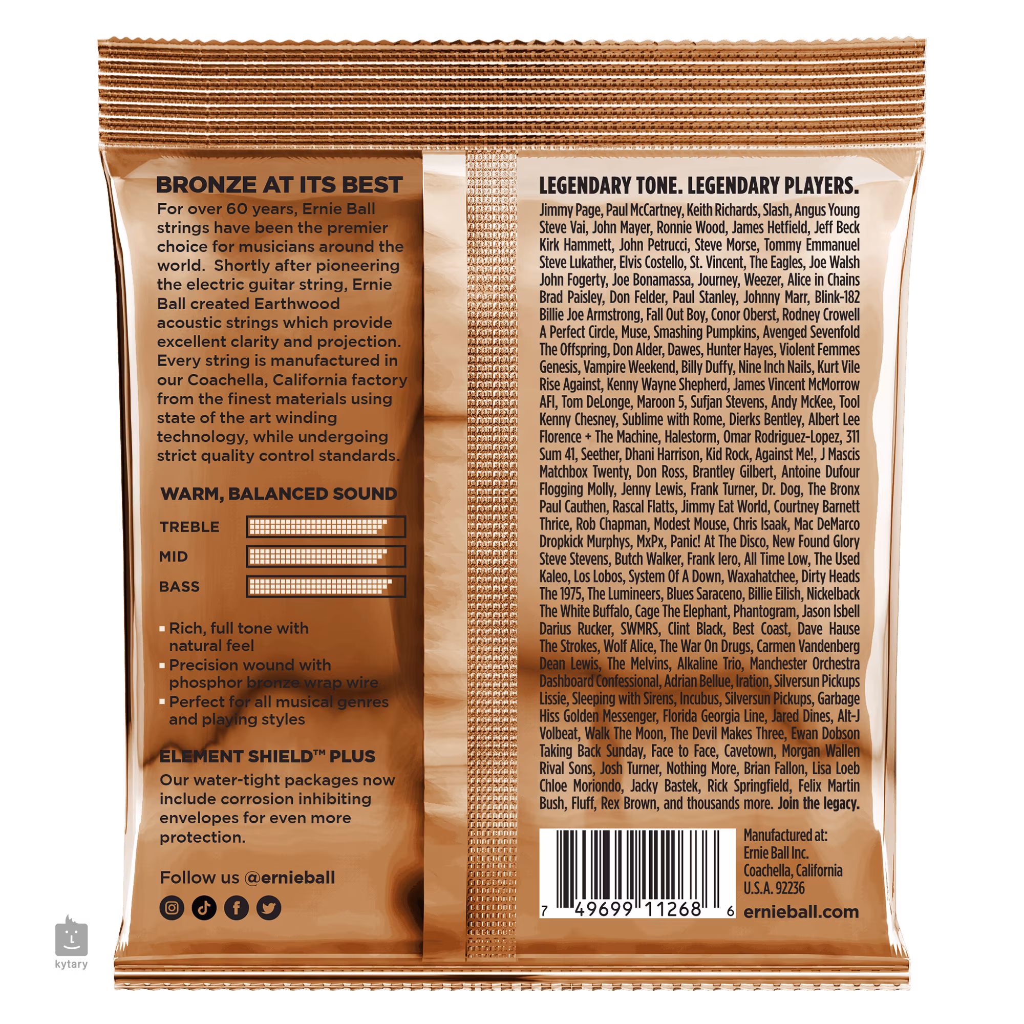 Das amerikanische Unternehmen Ernie Ball gehört seit Jahrzehnten zu den führenden Herstellern von Gitarrensaiten. Für deren Herstellung verwendet es modernste Technologien und hochwertige Materialien. Damit wird es den aktuellen Anforderungen und Ansprüchen selbst der anspruchsvollsten Gitarristen gerecht. Ihr einzigartiger Klang ist auf Aufnahmen von Größen wie Paul McCartney, Keith Richards, Eric Clapton, Slash oder Jimmy Page zu hören.