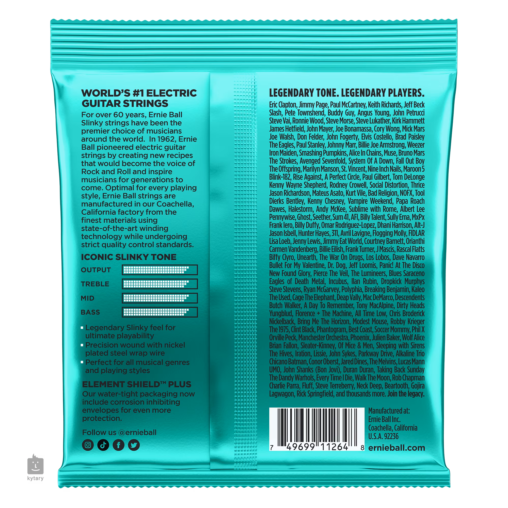 Diese Saiten der Marke Ernie Ball sind unter den Saiten für E-Gitarren ein absoluter Bestseller und der Goldstandard. Sie zeichnen sich insbesondere durch die Qualität der verwendeten Materialien, die präzise Verarbeitung und die klangliche Vielseitigkeit aus, dank der sie in fast jedem Musikgenre eingesetzt werden können. Ihre Basis bildet ein sechseckiger Stahlkern und eine zylindrische Wicklung aus vernickeltem Stahl. Das Ergebnis ist ein frequenzausgeglichener Klang, der sich in Rock-, Metal-, Pop- und Bluesmusik bewährt.