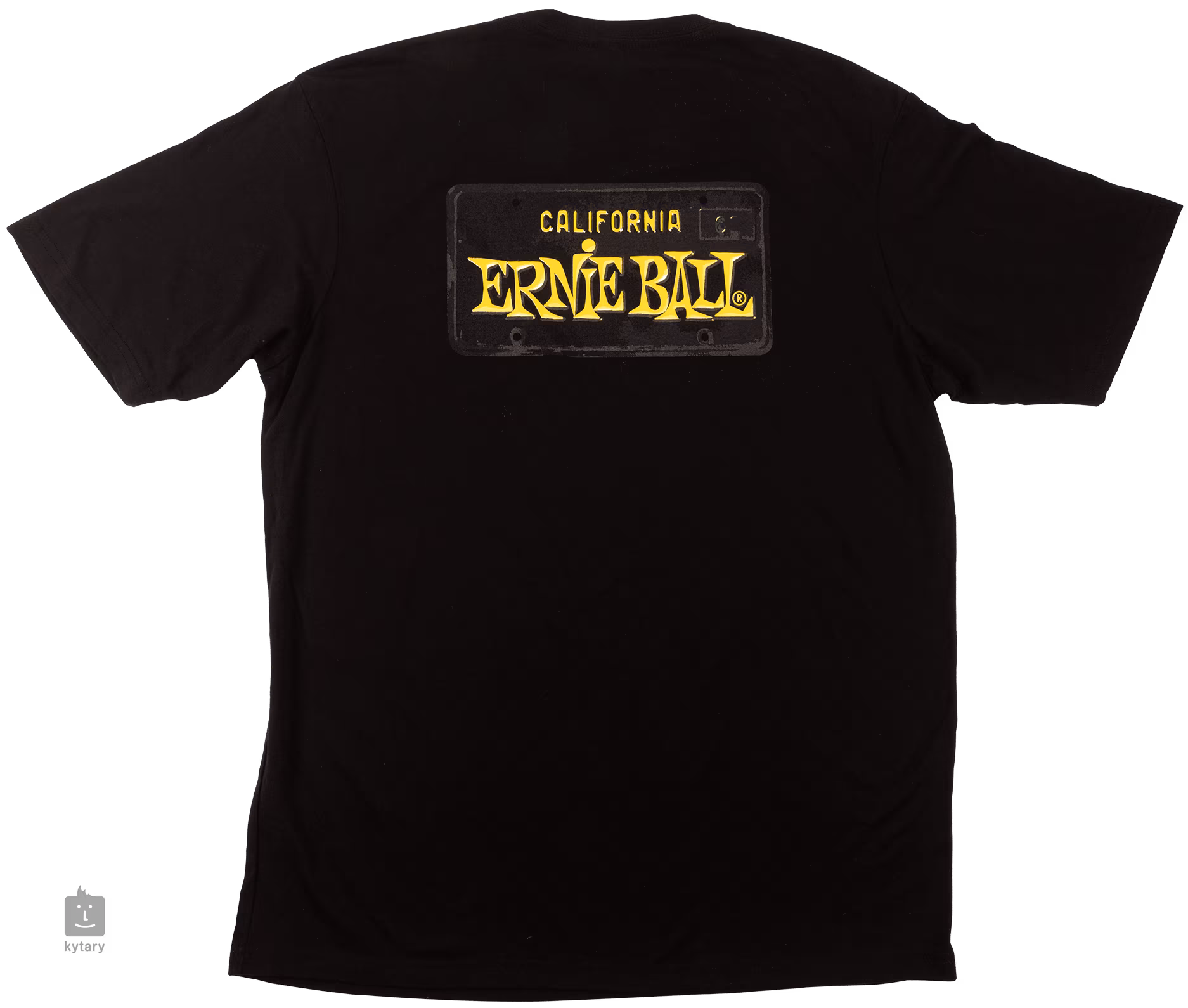 Unisex-T-Shirt mit kalifornischem Nummernschild und Ernie Ball-Logo. Das verwendete Material ist 65% Polyester, 35% Baumwolle.