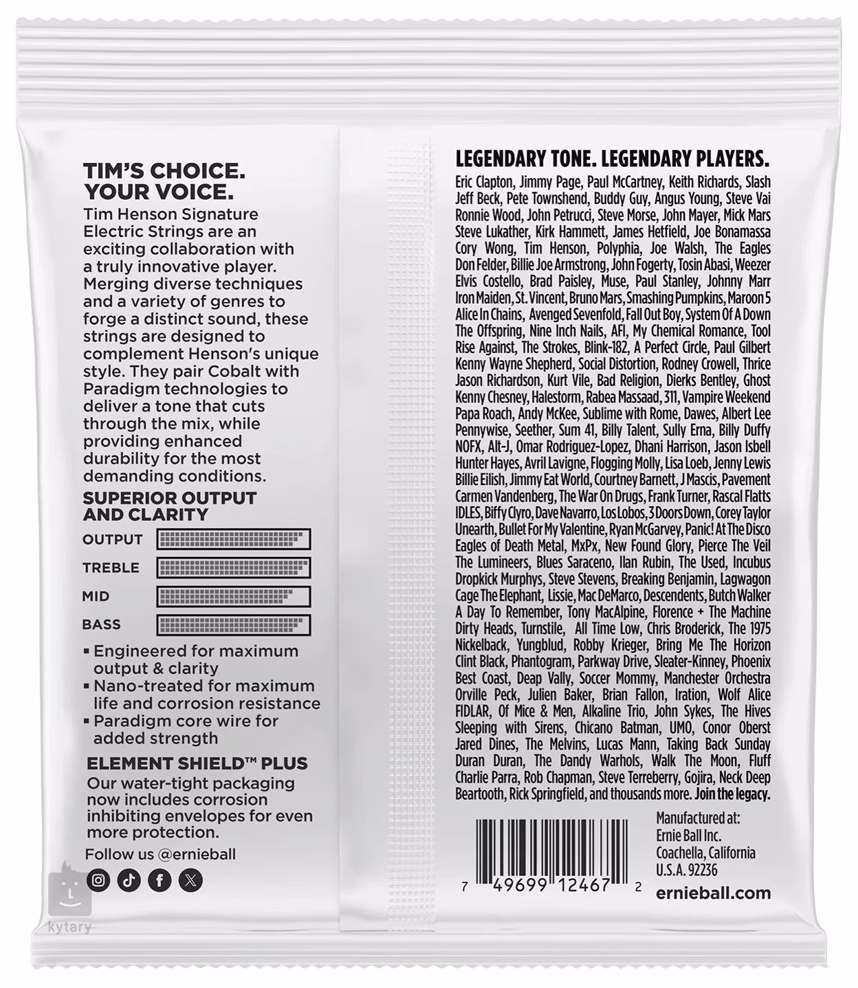 Die Marke Ernie Ball ist ein weltweit anerkannter Hersteller von Saiten und Gitarrenzubehör, der seit 1962 erstklassige Produkte für Gitarristen und Bassisten herstellt. Zu den Nutzern gehören legendäre Musiker wie Paul McCartney, Keith Richards, Eric Clapton, Slash, Jimmy Page, John Mayer, Tim Henson oder Buddy Guy. Die Marke nutzt modernste Technologien und hochwertigste Materialien, um das Spielerlebnis ständig zu verbessern und eine breite Palette an Ausdrucksmöglichkeiten zu bieten.