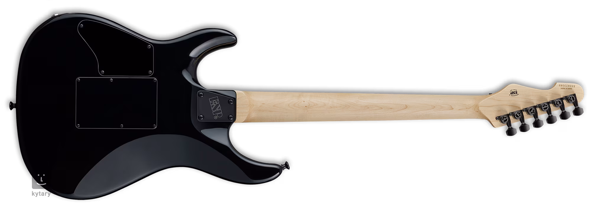 Das Modell E-II SN-2/BM/NBLKB basiert auf den Merkmalen der ESP Snapper-Gitarren. Der Erlenkorpus des Instruments ist mit einer Ahorndecke (Burl Maple) mit Holzmaserung verziert, die von einem spektakulären Nebula Black Burst Finish unterstützt wird. Ein Ebenholz-Griffbrett mit vierundzwanzig Extra-Jumbo-Bünden ist auf den verschraubten Ahornhals geklebt. Die Orientierung auf der Oberfläche wird durch Positionspunkte und ein unverwechselbares ESP-Inlay am zwölften Bund erleichtert.