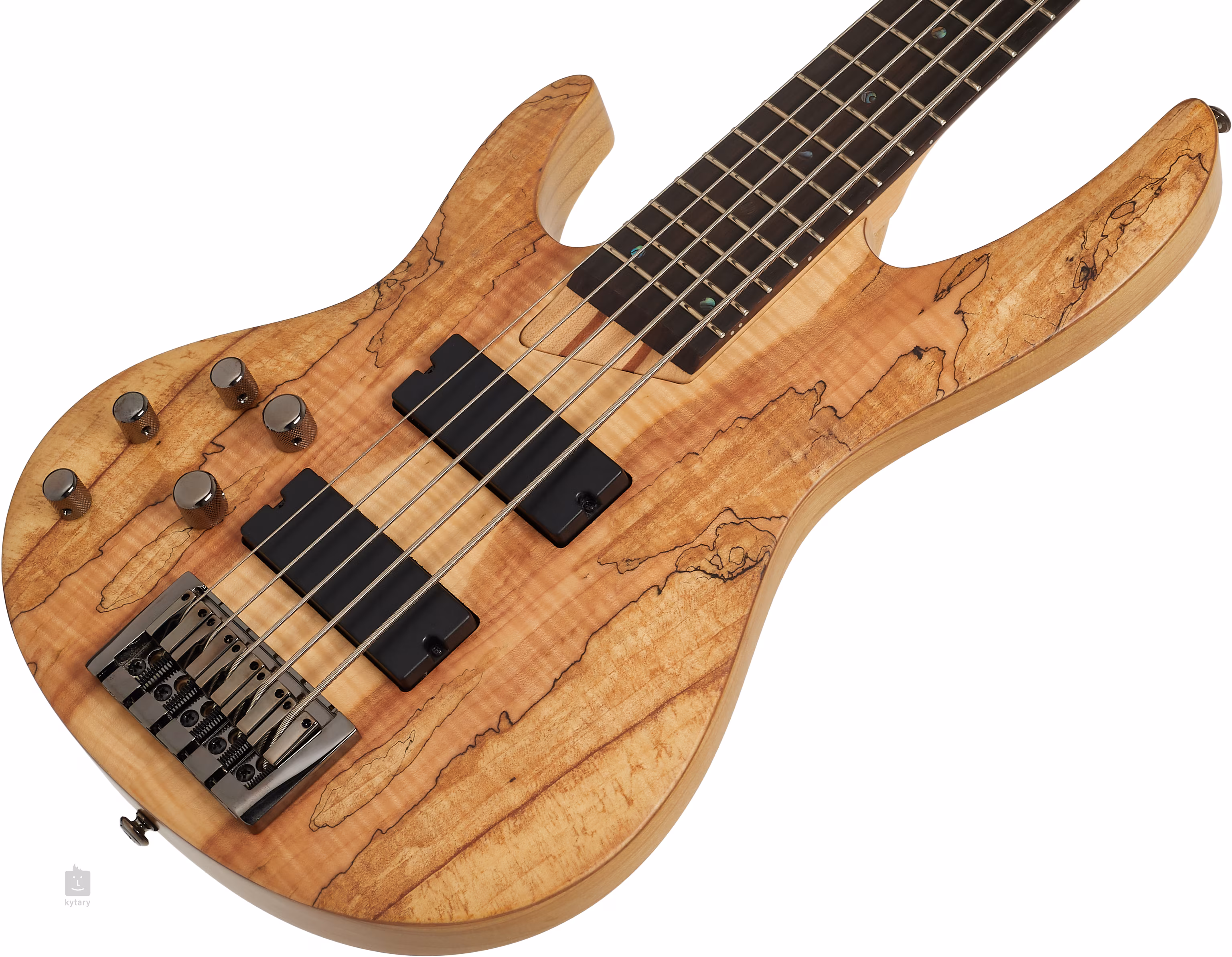 Dieser Bass besteht aus einem massiven Eschenkorpus mit einer Ahorndecke mit ausgeprägter Maserung, an die ein fünfteiliger Hals aus Ahorn und Palisander geschraubt ist. Das Griffbrett ist aus Palisander. Die Mensur des Instruments ist auf 868 mm verlängert, mit 24 XJ-Typ-Bünden, und die Breite des Nullbundes wird mit 45 mm gemessen. Das Halsprofil entspricht dem Extra Thin U, es ist also ein sehr komfortabler und schneller Hals.