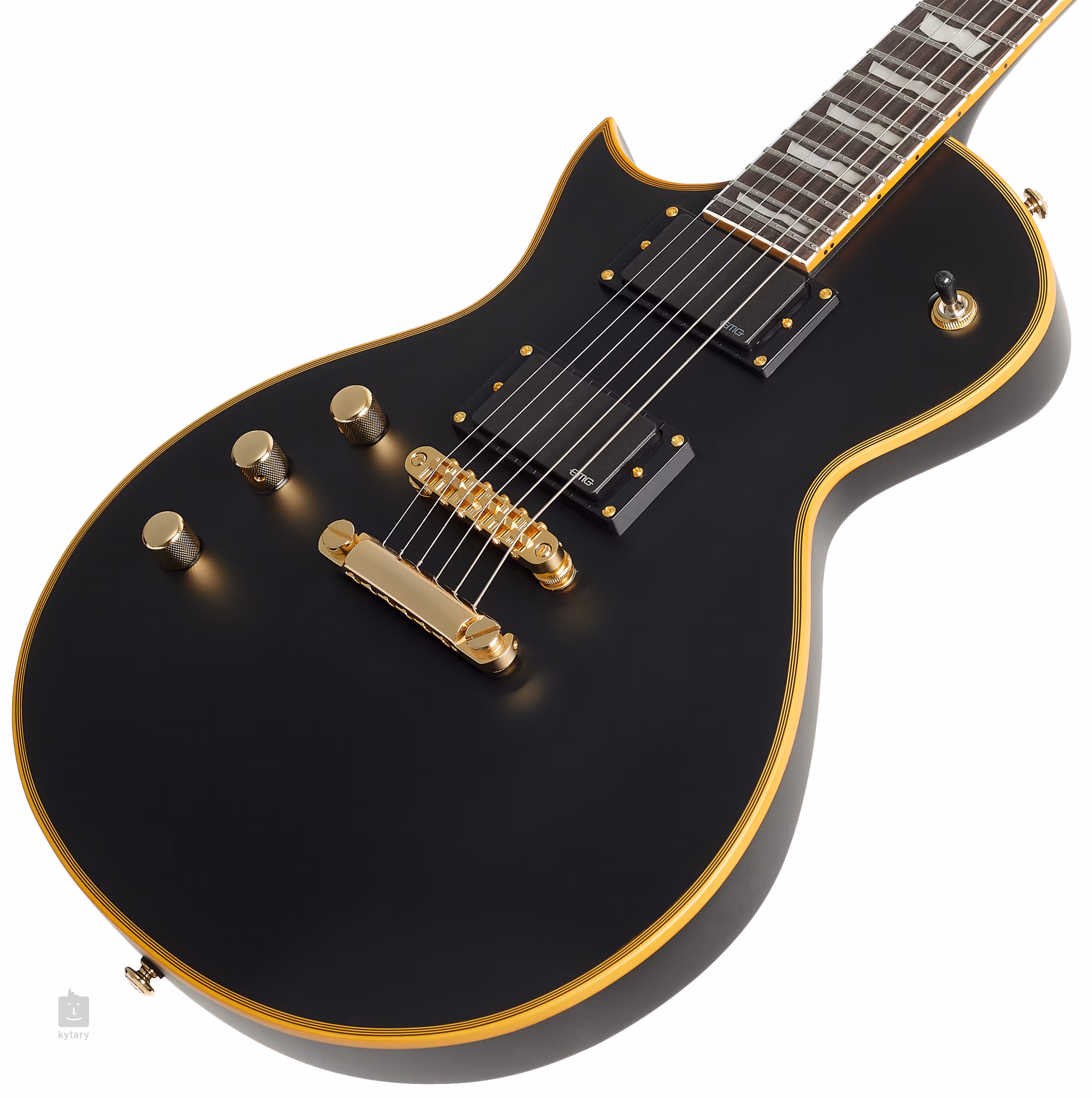 Der Tonabnehmer wird von zwei EMG-Humbuckern übernommen, die mit Lautstärkepotentiometern für jeden Tonabnehmer und einer Tonblende geregelt werden können. Außerdem gibt es einen Schalter mit drei Stellungen. Mit dieser Konfiguration können Sie die Gitarre so einstellen, wie Sie es wünschen, unabhängig von Ihren Vorlieben.