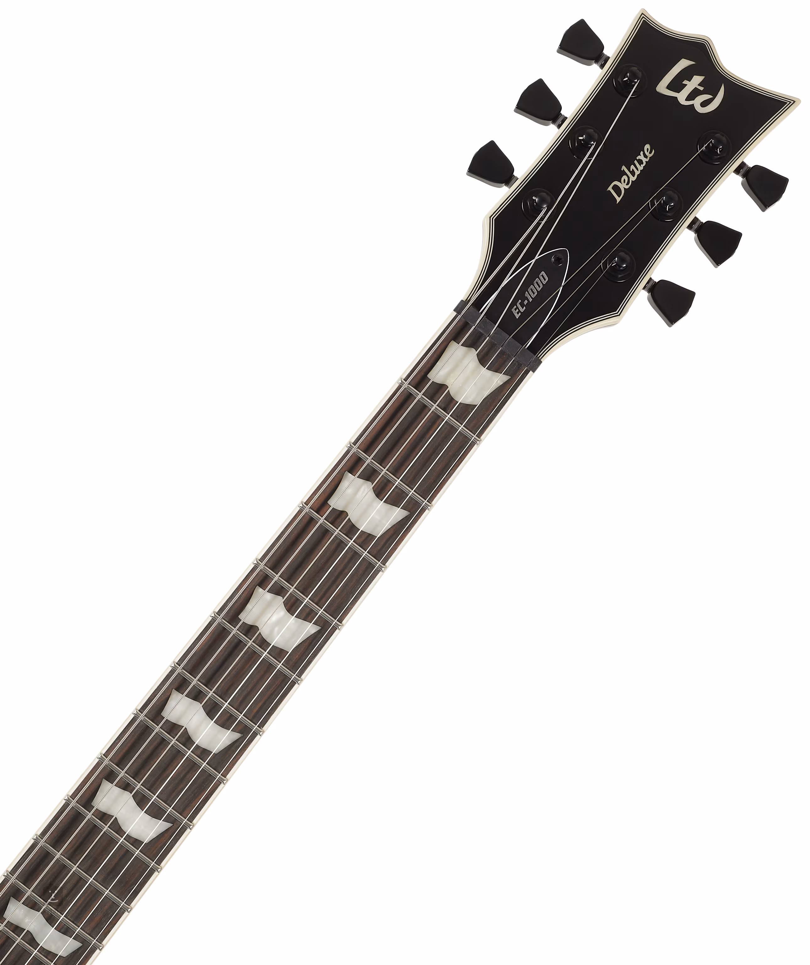 EC-1000 E-Gitarren sind Teil der LTD Deluxe-Serie. Ihr Klang, ihr Design, ihre Verarbeitung und ihre Spieleigenschaften entsprechen voll und ganz den professionellen Instrumenten. Sie sind eine gute Wahl für Spieler, die eine Gitarre suchen, die sie in Bezug auf Klang und Design würdig repräsentiert.
