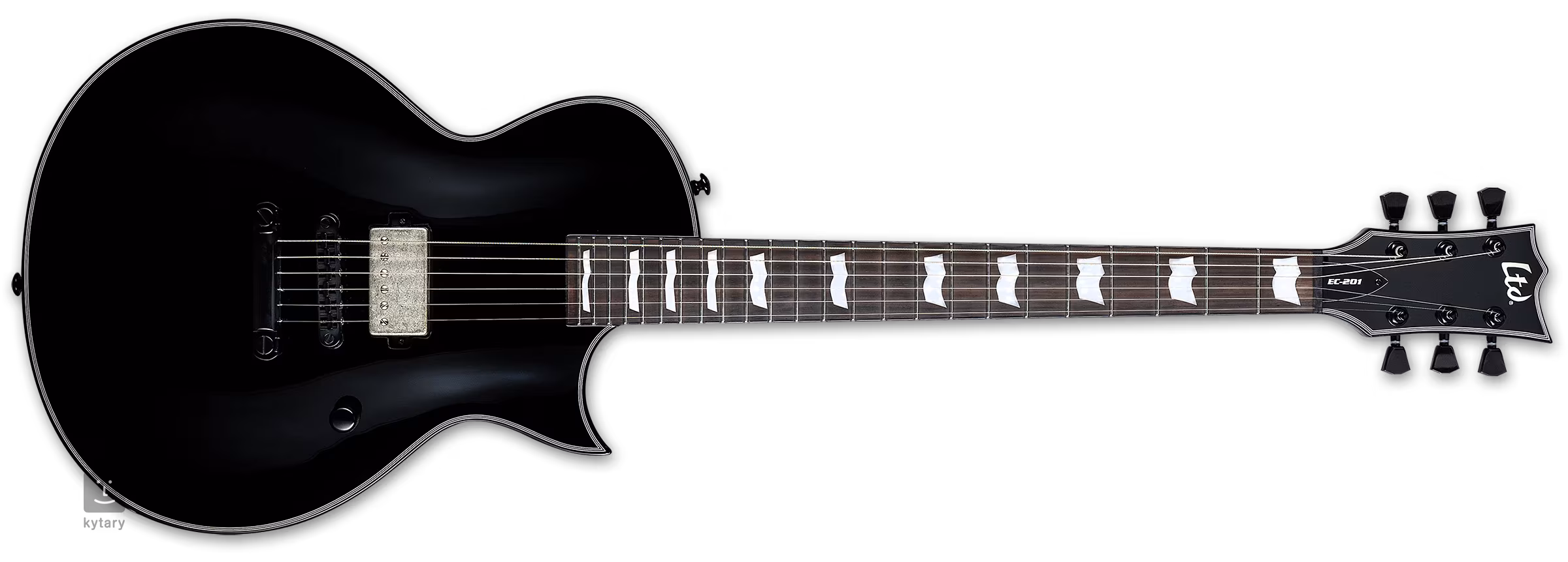 Der Korpus der EC-201 Black ist aus Mahagoni gefertigt. Der schmale dreiteilige Mahagoni-Hals mit "Thin U"-Profil ist auf ein Palisander-Griffbrett mit vierundzwanzig Extra-Jumbo-Bünden geleimt. Die Orientierung auf dem Griffbrett wird durch Positionsmarker im ESP Flag Design erleichtert.
