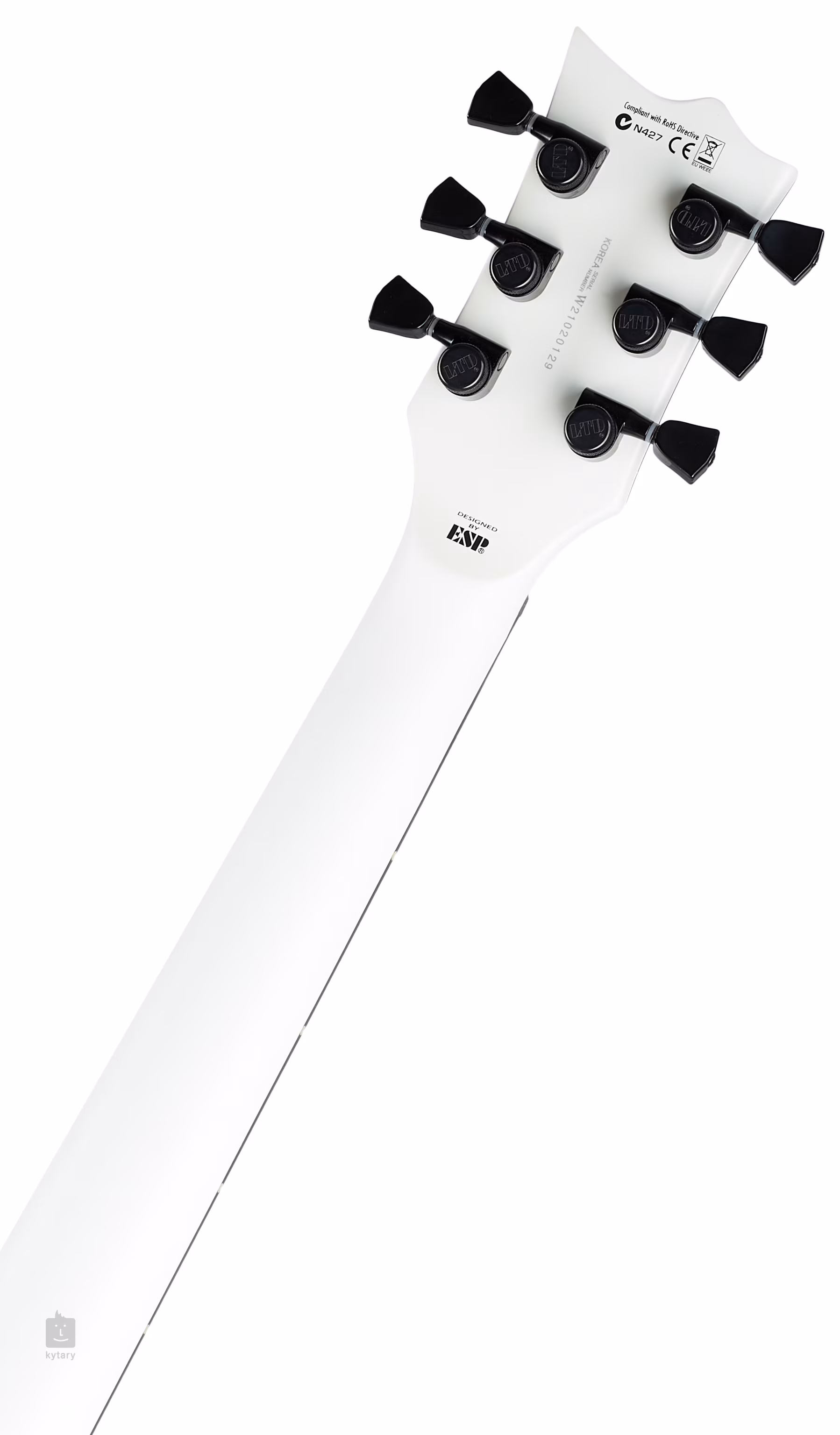 Der einteilige Korpus der EC-ARCTIC METAL SNOW WHITE SATIN ist aus Mahagoni gefertigt. Ein dreiteiliger Mahagoni-Hals mit einer Set-Thru-Konstruktion, d.h. einem tiefer in den Korpus eingelassenen Hals, wird durch ein Ebenholz-Makassar-Griffbrett mit vierundzwanzig Extra-Jumbo-Edelstahlbünden ergänzt.