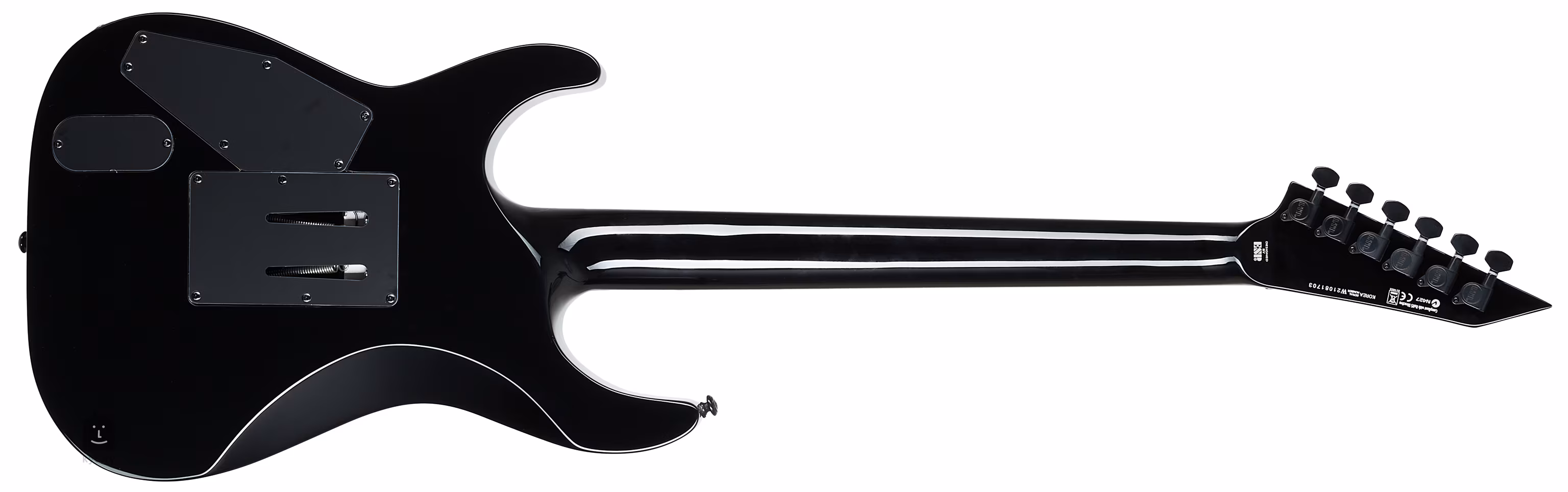 Zwei aktive EMG-Signature-Humbucker verleihen der Gitarre den unverwechselbaren Kirk Hammett-Sound, den man von Metallica kennt. Zwei Lautstärkepotentiometer, eine Tonblende und ein dreistufiger Tonabnehmerschalter dienen zur Einstellung. Die Saiten sind in den Stimmmechaniken des Unternehmens und in einem Floyd Rose 1000 Double-Reverse-Tremolo montiert, mit dem Sie Ihrem Spiel beeindruckende Klangeffekte verleihen können. Verriegelungen am Nullbund sorgen für maximale Stimmstabilität auch bei häufigem Gebrauch des Hebels. Das stilvolle Aussehen des Instruments wird durch die schwarze Lackierung des Korpus und der Hardware unterstrichen.