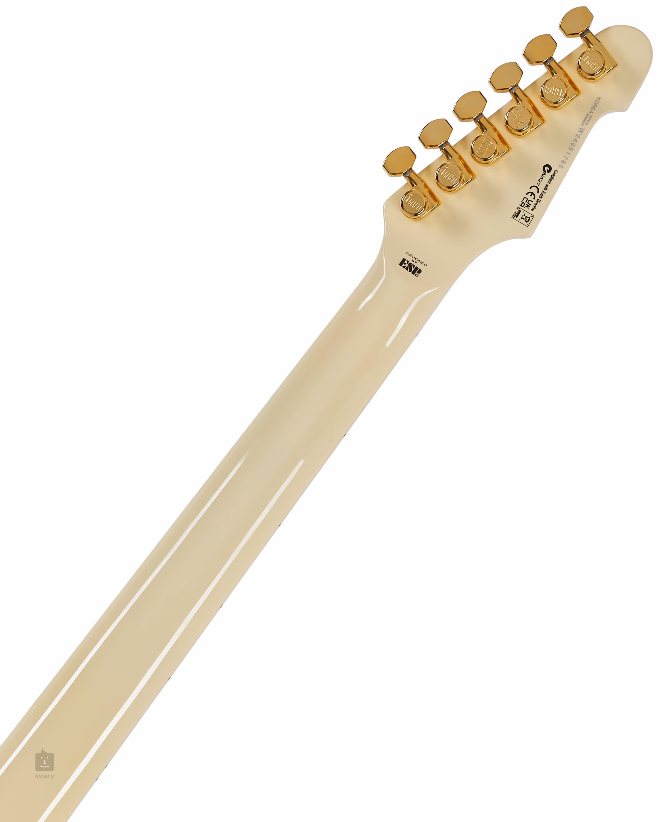 Die Saiten werden in den hochwertigen Locking-Mechanismen des Unternehmens und einer soliden Tonepros Locking TOM und Saitenbrücke gehalten. Das stilvolle Aussehen des Instruments wird durch das Vintage White-Finish und die goldene Hardware unterstrichen.