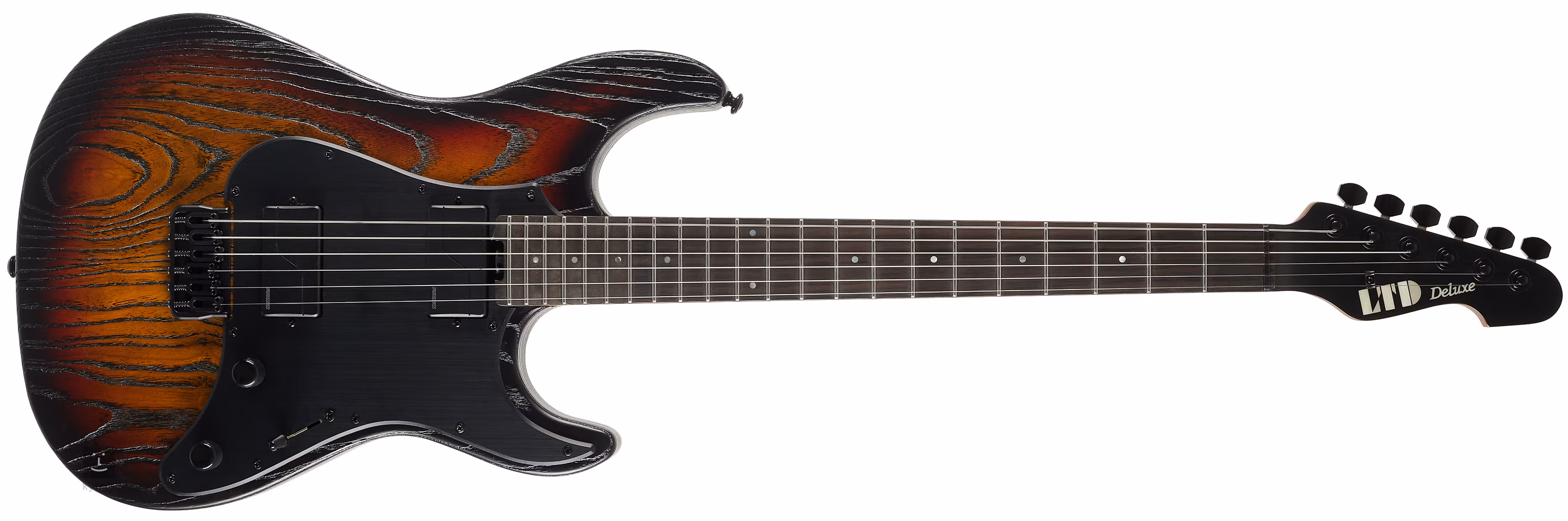 Ein beklebter, unansehnlicher Karton. Die E-Gitarren SN-1000 im Super ST-Design Snapper gehören zur LTD Deluxe-Serie, die das Beste aus der LTD-Produktion darstellt. Der Klang, das Design, die Verarbeitung und die Spieleigenschaften der Instrumente dieser Serie können sich auch im Vergleich zu teureren „High-End“-Gitarren voll und ganz behaupten. Der Korpus des Modells SN-1000HT FIRE BLAST ist aus Sumpfeiche gefertigt. Der verschraubte Ahornhals ist mit einem Griffbrett aus Makassar-Ebenholz versehen, das mit 22 Edelstahlbünden in Extra-Jumbo-Größe besetzt ist (zwischen dem 17. und 22. Bund ist das Griffbrett gewölbt). Die Wärmebehandlung des Halses verbessert die Eigenschaften des Holzes (Stabilität, Haltbarkeit, Wasser- und Temperaturbeständigkeit) und verleiht der Gitarre gleichzeitig einen angenehmen Vintage-Touch. Der variable Radius des Griffbretts ermöglicht sowohl komfortables Spielen von Riffs am Nullbund als auch komfortables, ultraschnelles Shredding in höheren Lagen. Zwei aktive Fishman Fluence Modern Humbucker mit Keramik- und Alnico-Magneten verleihen der Gitarre einen großartigen dynamischen Klang (ohne jegliches Begleitrauschen) mit präziser Artikulation einzelner Töne/Akkorde und bei Bedarf auch einer ausreichenden Portion Schlagkraft/Aggressivität. Die Push/Pull-Tonabnehmerwahl ermöglicht das Umschalten zwischen verschiedenen Klangfarben – das Klangspektrum der Gitarre ist somit wesentlich breiter, als es auf den ersten Blick erscheinen mag. Die Bedienelemente werden standardmäßig durch einen dreistufigen Tonabnehmer-Schalter ergänzt. Eine stabile Stimmung wird durch die Befestigung der Saiten in den verriegelbaren LTD-Mechaniken und durch den festen Hipshot-Steg durch den Gitarrenkorpus gewährleistet. Das stilvolle Aussehen des Instruments wird durch einen schwarzen Nullsattel aus Knochen, ein gebürstetes schwarzes Schlagbrett und schwarze Hardware unterstrichen. Die Firma ESP widmet sich seit 1984 der Herstellung von E-Gitarren und zu ihren zufriedenen Kunden zählen beispielsweise Kirk Hammett, James Hetfield, Ronnie Wood oder Max Cavalera. Aufgrund der Beliebtheit dieser Instrumente wurde auch die Tochtergesellschaft LTD gegründet, die beliebte Modelle in einer erschwinglichen Variante anbietet. Auch bei den ESP-LTD-Gitarren wird jedoch großer Wert auf die Verarbeitungsqualität und die verbauten Komponenten gelegt.