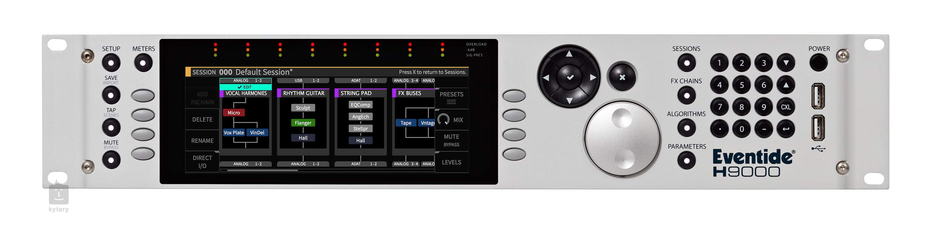 Der Eventide H9000 ist ein achtkanaliger Effektprozessor, den auch die anspruchsvollsten Anwender zu schätzen wissen. Im Vergleich zu seinem Vorgänger bietet der H8000 achtmal mehr Rechenleistung und eine Vielzahl von Anschlussmöglichkeiten (AES/EBU, ADAT, 16 USB-Kanäle usw.).