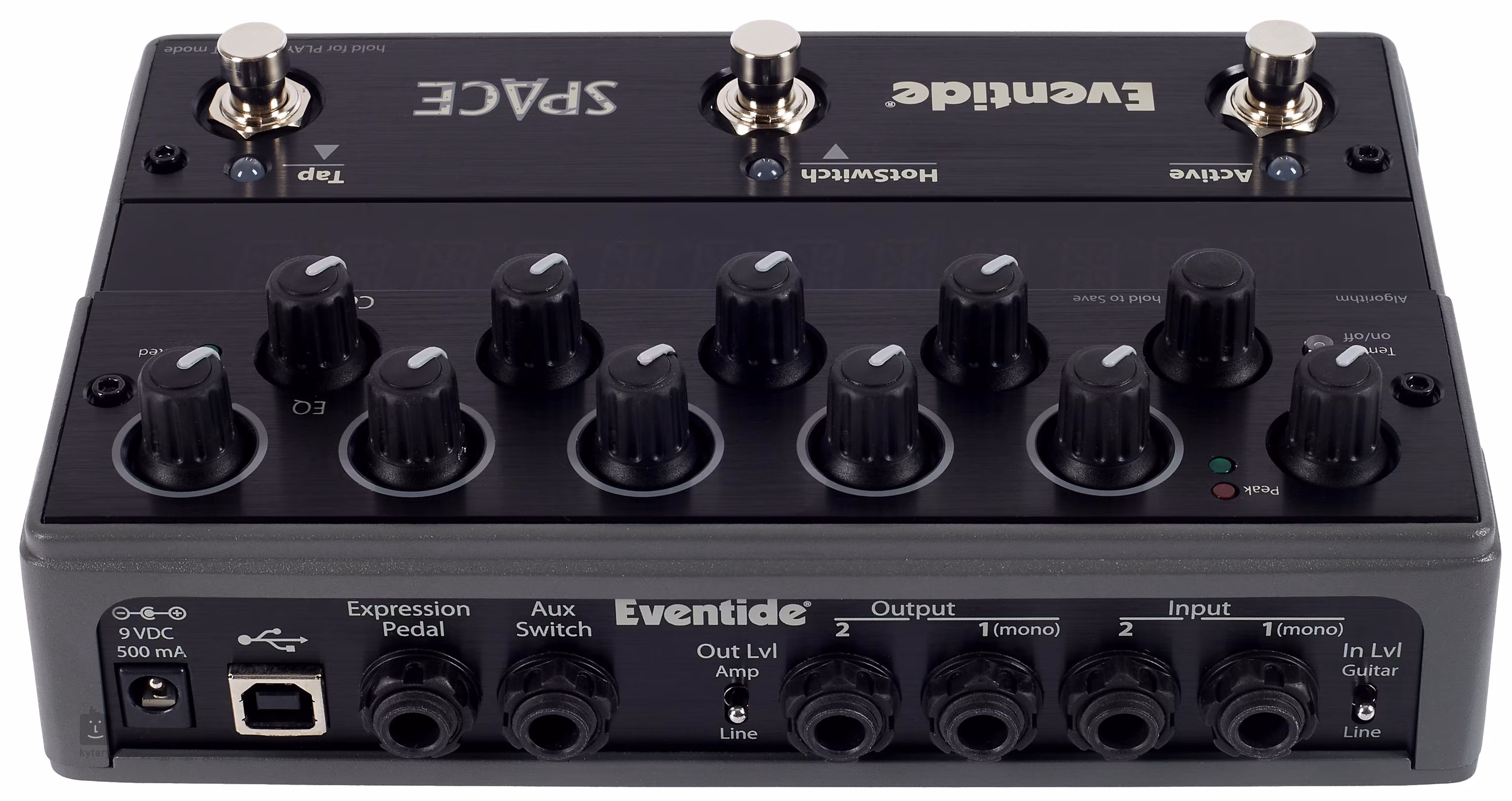 11 Potentiometer und 3 Fußschalter dienen zur Steuerung des Space, während ein großes und übersichtliches Digitaldisplay über alle Vorgänge im Setup informiert. Zu den weiteren Optionen des Space gehört die Erstellung von 100 Presets, die über MIDI oder True-Bypass steuerbar sind. Einfach gesagt - alles, was dieser Effekt haben kann.