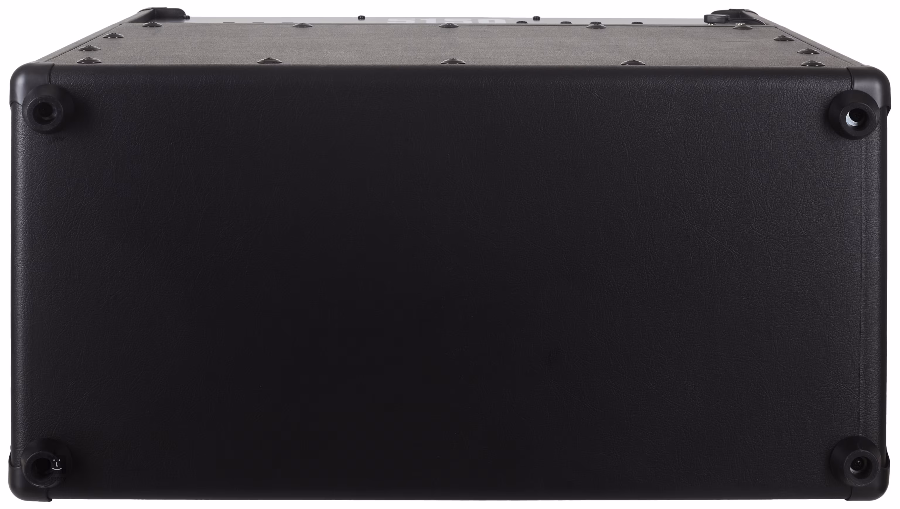 Die Rückseite bietet eine Effektschleife, einen Leistungsattenuator (Full, 1/4), zwei Ausgänge für Lautsprecherboxen mit wählbarer Impedanz (4, 8, 16 Ohm), einen 6,3-mm-Klinkenausgang für den Vorverstärker, einen XLR-Ausgang mit Lautsprecheremulation und einen Anschluss für den mitgelieferten Zweikanal-Fußschalter (Kanalumschaltung, Boost ein/aus). Das Gehäuse des Combos ist mit schwarzem, strukturiertem Vinylbezug verkleidet.