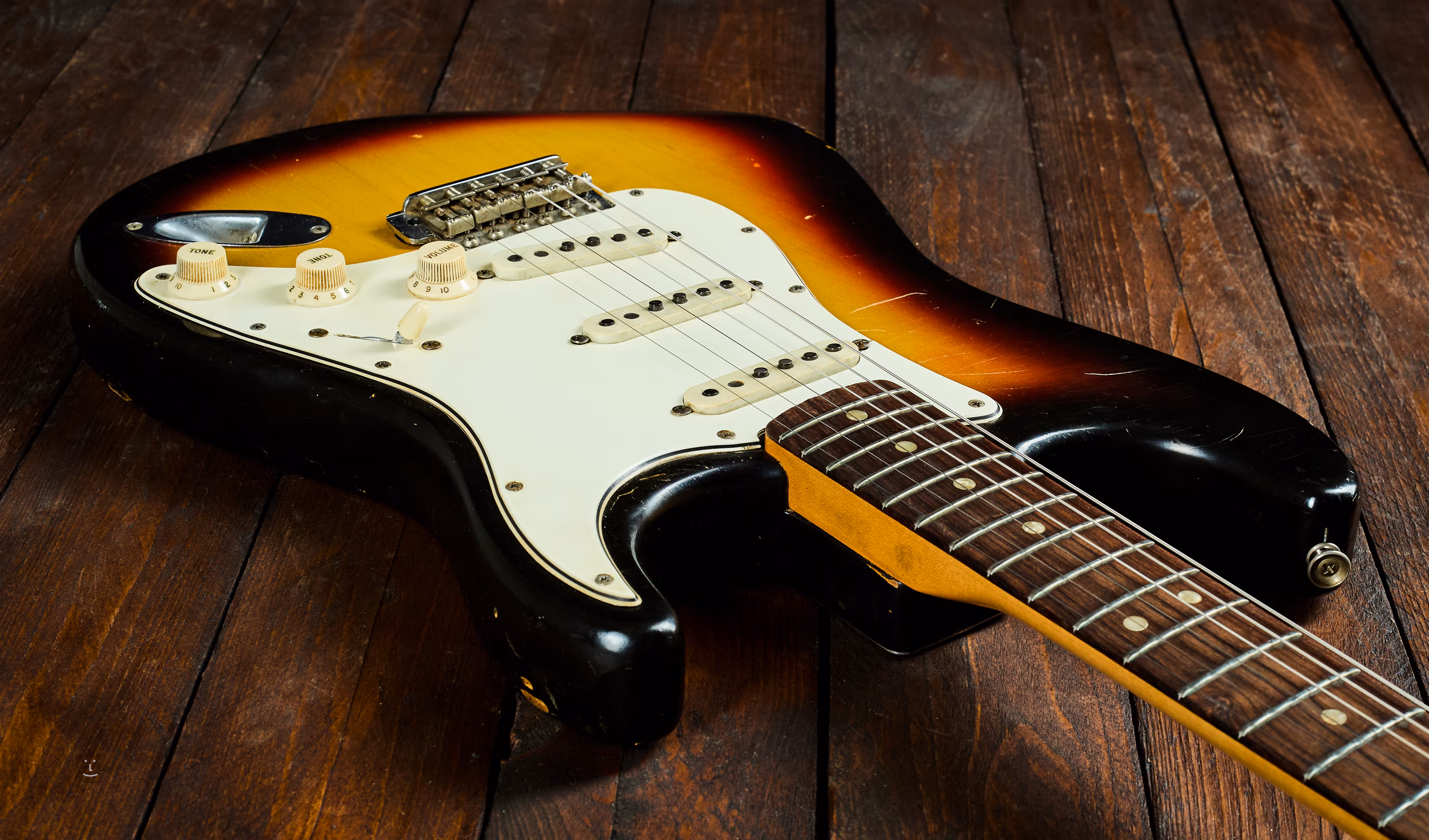 Ein Relikt aus den 1960er Jahren, ein Stück aus der Frühgeschichte der Pop- und Rockmusik. Eine Stratocaster, die man als Gitarre im Originalzustand bezeichnen kann. Nur wenige von ihnen haben bis heute überlebt, und es werden noch weniger werden.