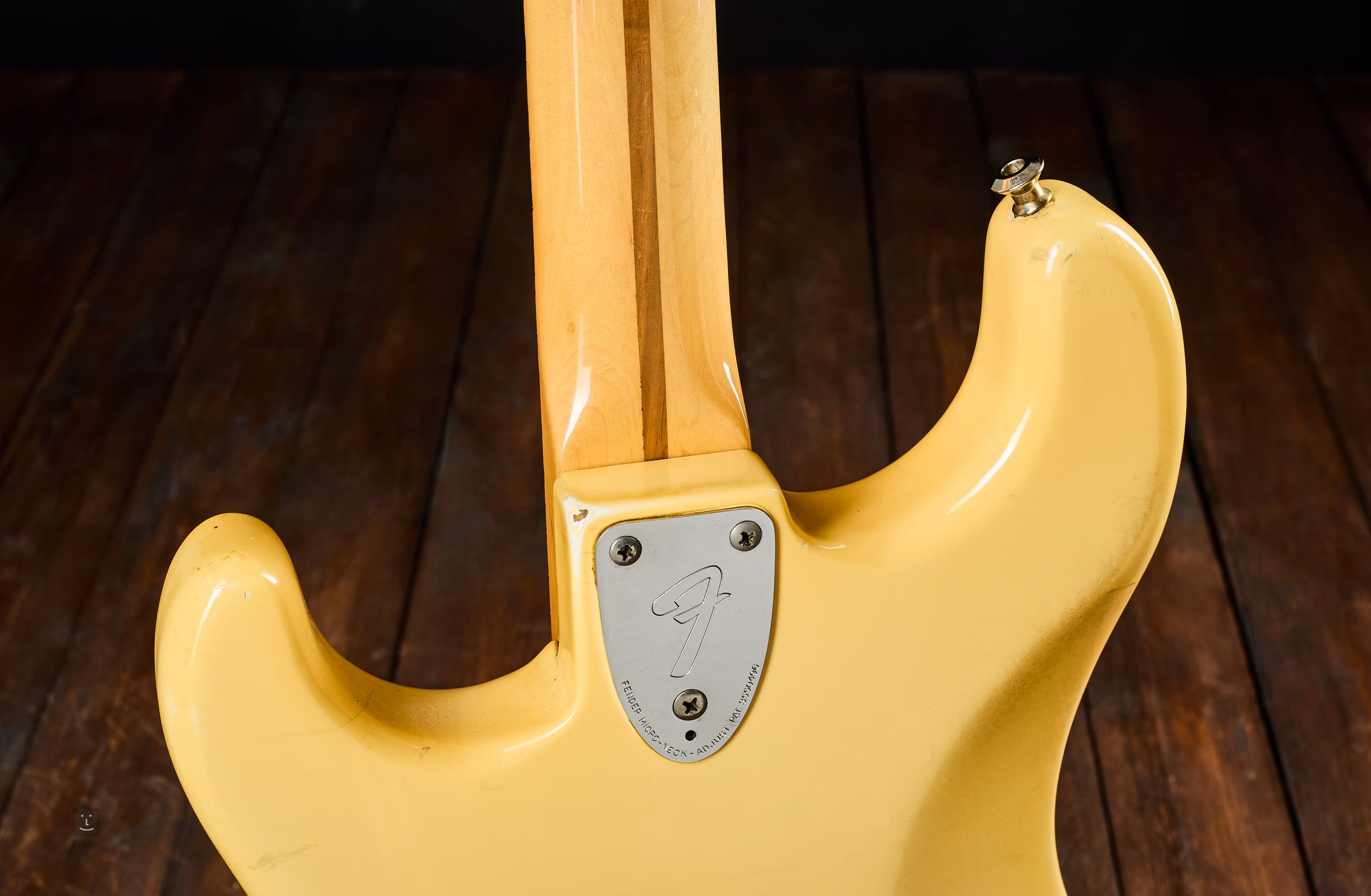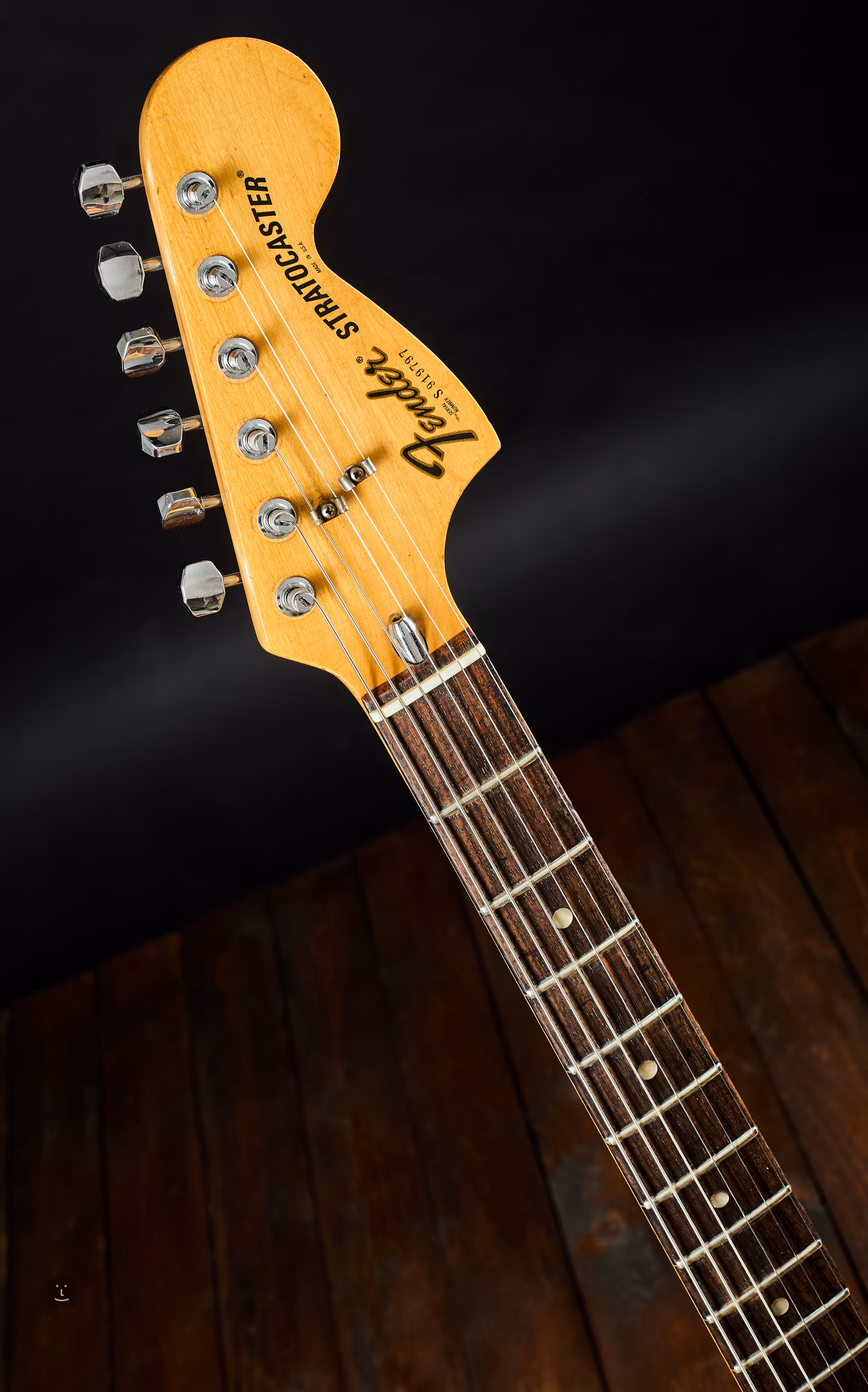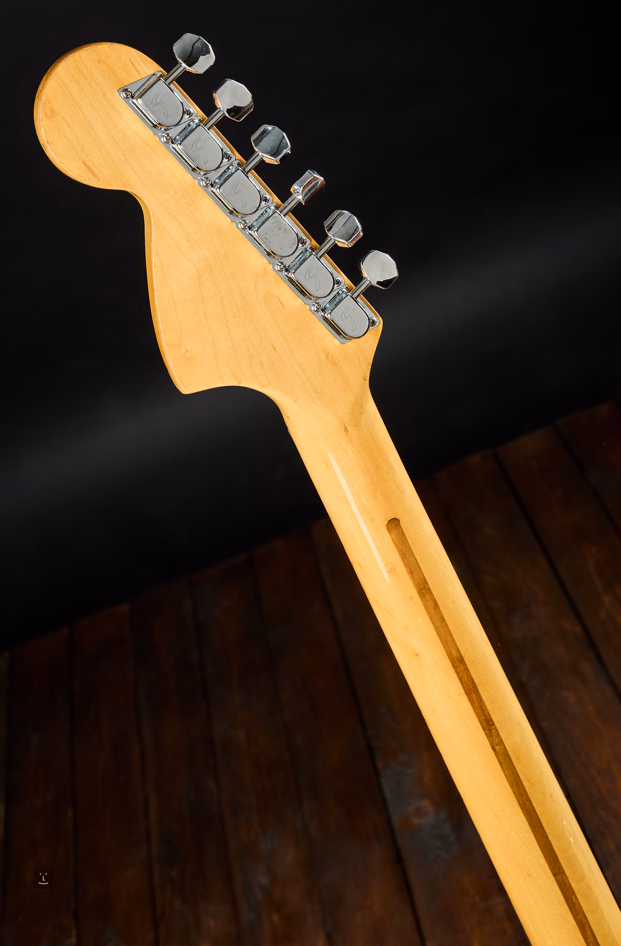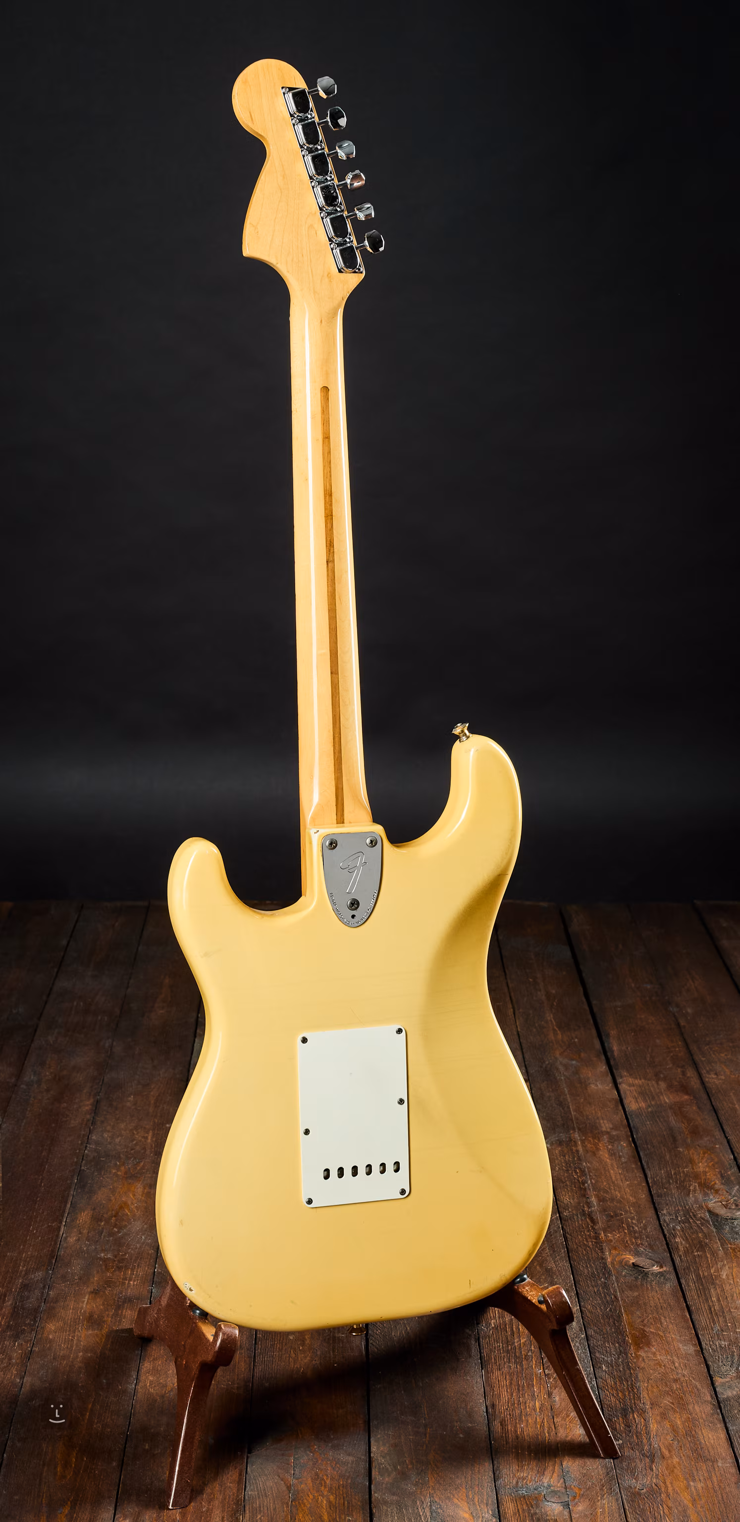 Die Potentiometer sind von 1978, und das Instrument kommt mit dem originalen Fender-Kunststoffkoffer, dem Schlagbrett und dem Hebel.