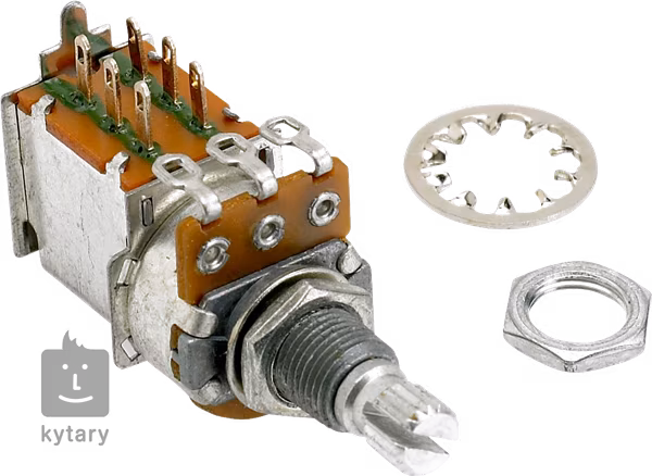 Split-Shaft-Potentiometer mit einem Widerstand von 250 kOhm und Push/Pull-Funktion. Damit können Sie beispielsweise auch das Aufschalten von Tonabnehmern und andere Funktionen steuern. Befestigungsmaterial ist im Lieferumfang enthalten.