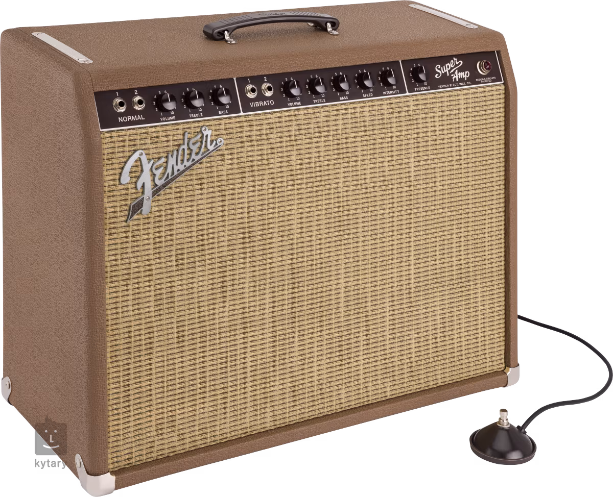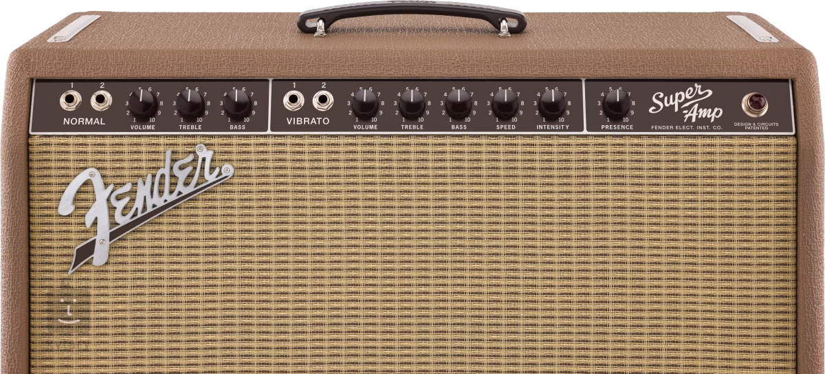 Tauchen Sie ein in den Sound der frühen 60er Jahre mit dem 62 Super Amp Röhrencombo von Fender - ein Verstärker, der elegant die Lücke zwischen dem rauen Ton der Tweed-Verstärker der 50er Jahre und dem funkelnden Clean-Sound der moderneren schwarzen Maschinen aus der Mitte der 60er Jahre überbrückt. Der 62 Super Amp Combo ist eines der ersten Modelle, das sowohl vom Sound als auch vom Design her in die so genannte "Brown Panel"-Ära fällt - eine Ära, die sich durch einen warmen, holzigen Sound auszeichnet, wenn man einen cleanen Ton verwendet, der sich in einen angenehmen Overdrive verwandelt, wenn er verstärkt wird.