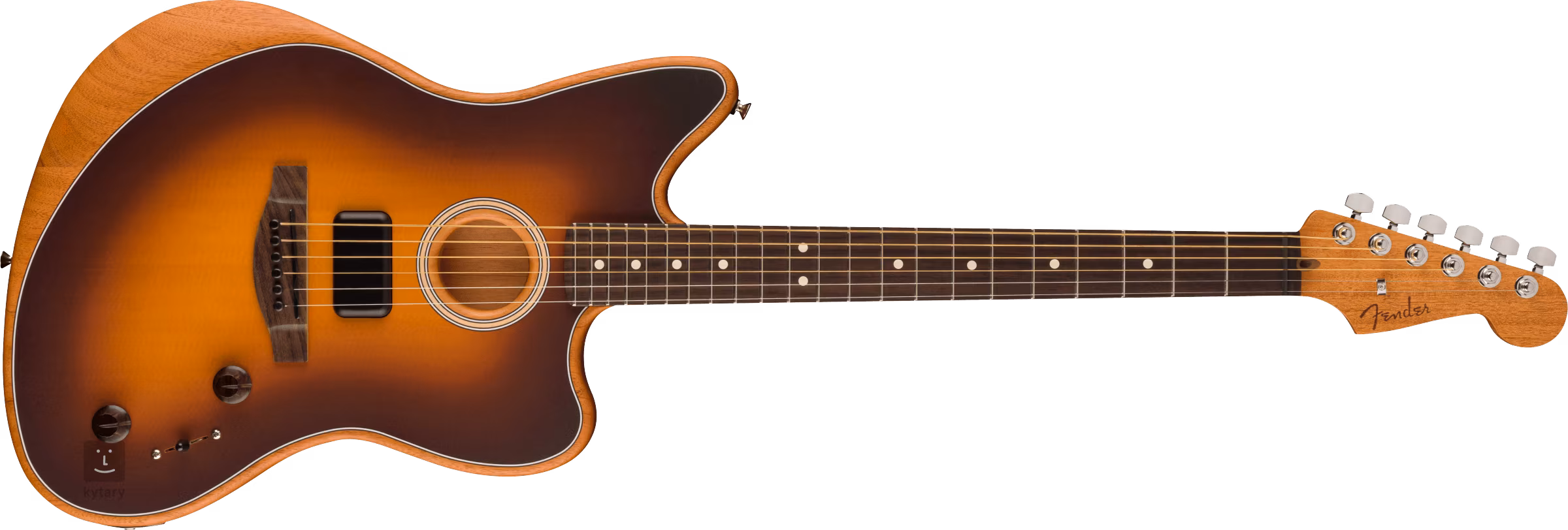 Der Klang wird von zwei Tonabnehmern eingefangen. Der magnetische Shawbucker-Tonabnehmer sorgt für den authentischen Klang von Fender-Elektrogitarren, während die Welt der elektroakustischen Gitarren durch den subkubischen Piezo-Tonabnehmer repräsentiert wird. Mit den Drehreglern können Sie die Lautstärke und das Verhältnis von magnetischen und Sub-Cubicle-Tonabnehmern einstellen und mit einem Drei-Positionen-Schalter zwischen Akustik- und E-Gitarren-Simulationen umschalten.