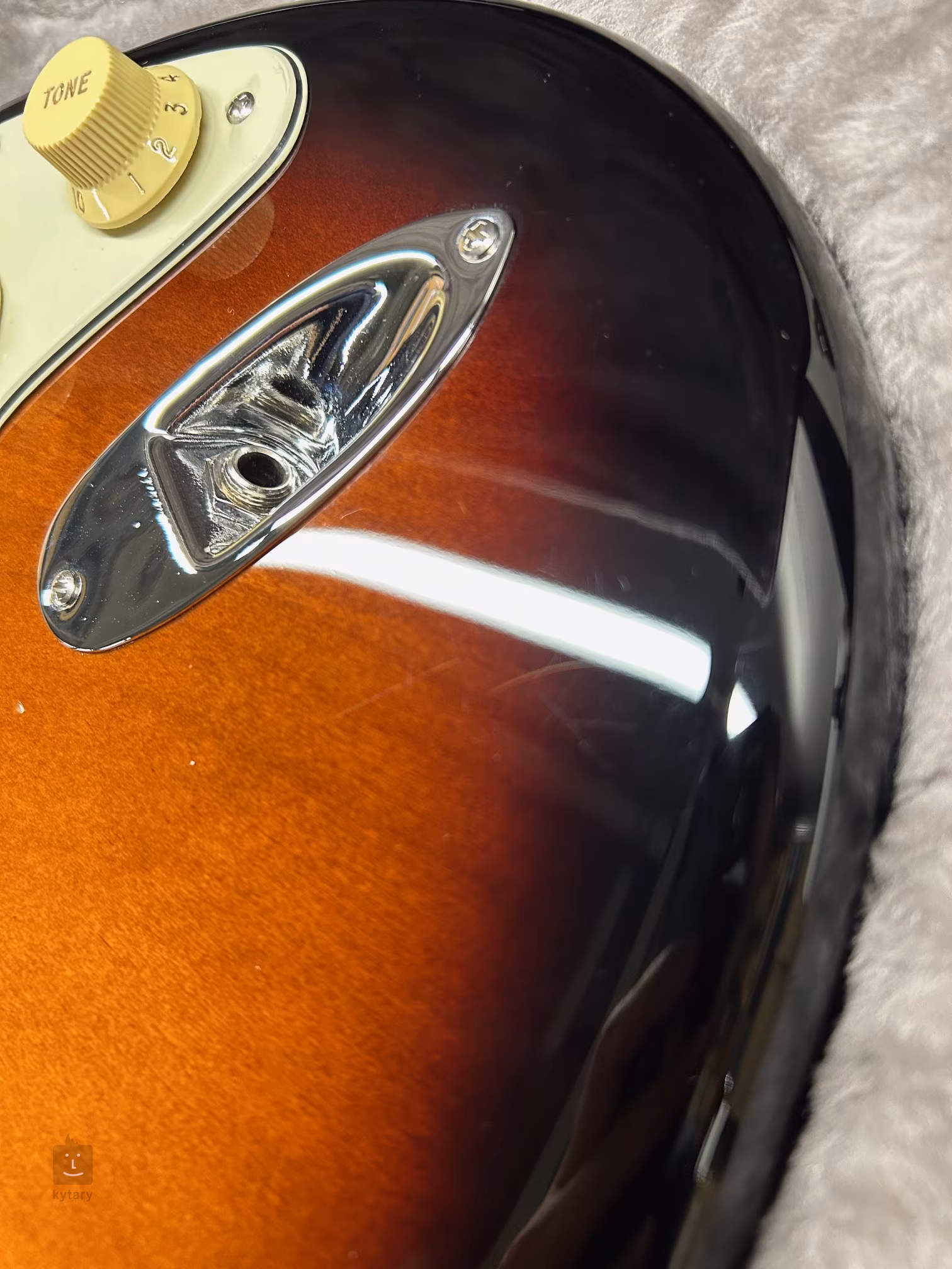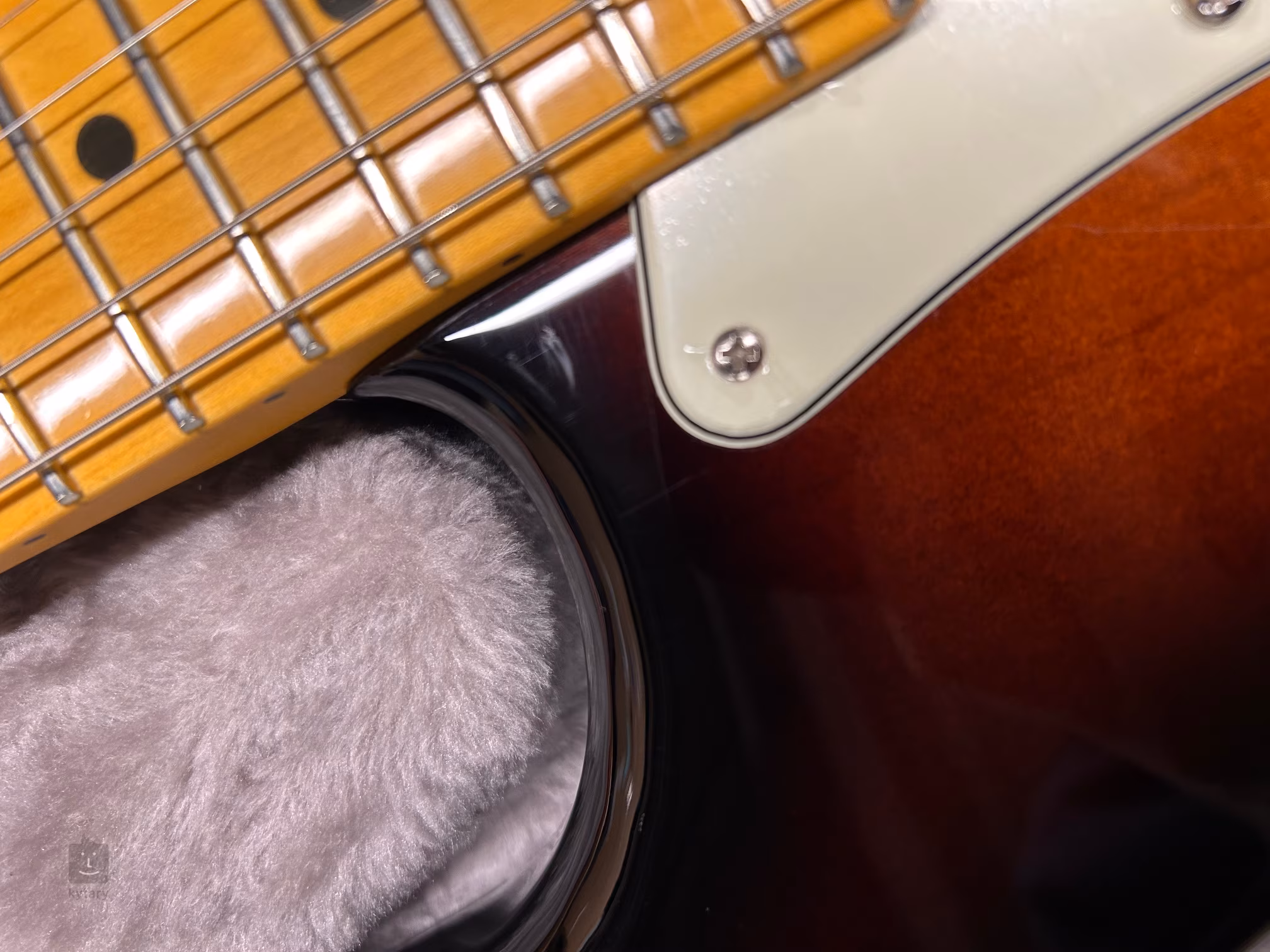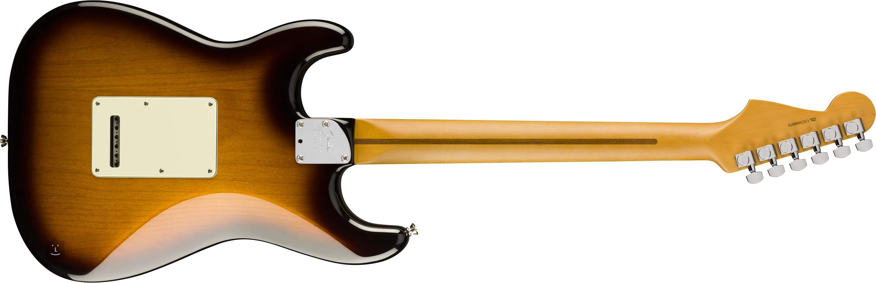 Der Erlenkorpus der American Professional II Stratocaster, Maple Fingerboard, Anniversary 2-Color Sunburst ist mit einem glänzenden Polyurethan-Lack überzogen. Der Ahornhals mit "Deep C"-Profil (eine Kreuzung aus Modern C und U) liegt perfekt in der Hand - egal, ob Sie schnelle Soli oder Akkorde spielen. Das Ahorn-Griffbrett ist durch zweiundzwanzig Narrow Tall-Bünde und weiße Positionspunkte unterteilt. Die abgerundeten Kanten des Griffbretts und der neu geformte Halsfuß sorgen für leichtes und komfortables Bundieren über die gesamte Griffbrettfläche.