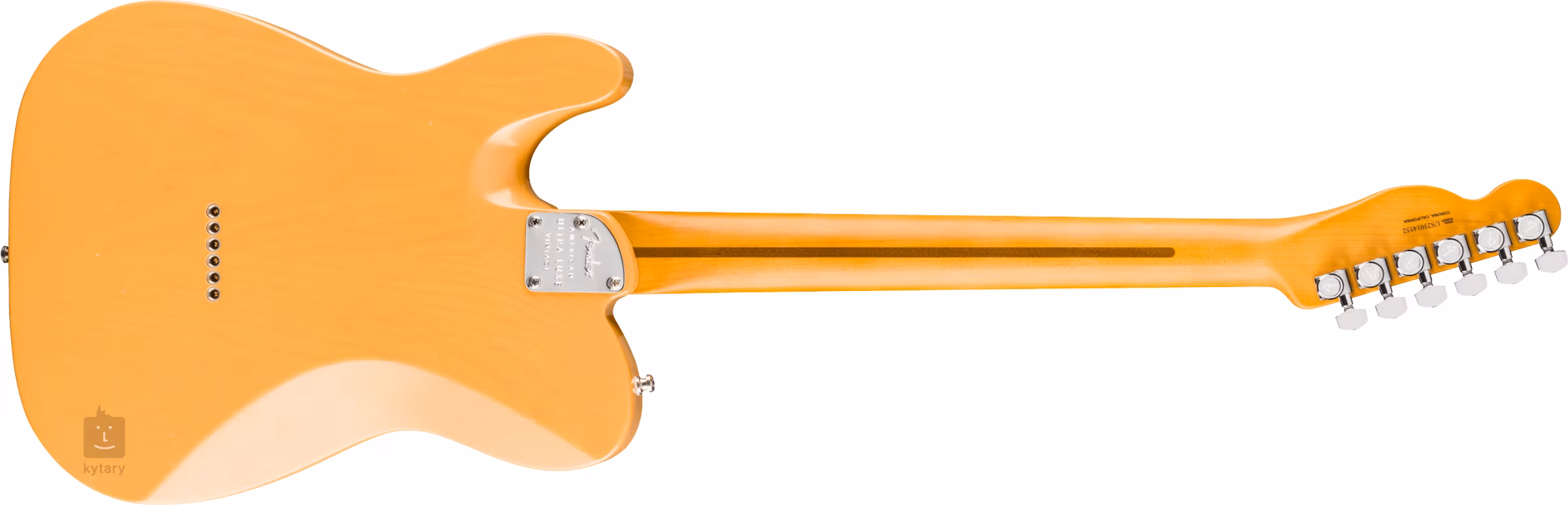 Die stabile Stimmung wird durch die Saitenbefestigung über den TusQ-Nullbund in den firmeneigenen Locking-Mechaniken (Fender Deluxe Cast/Sealed Locking) und über den Bund mit sechs polierten Messing-Sätteln durch den Korpus gewährleistet. Die schöne Verarbeitung wird durch das Butterscotch Blonde Farbfinish und das einlagige schwarze Schlagbrett noch unterstrichen.