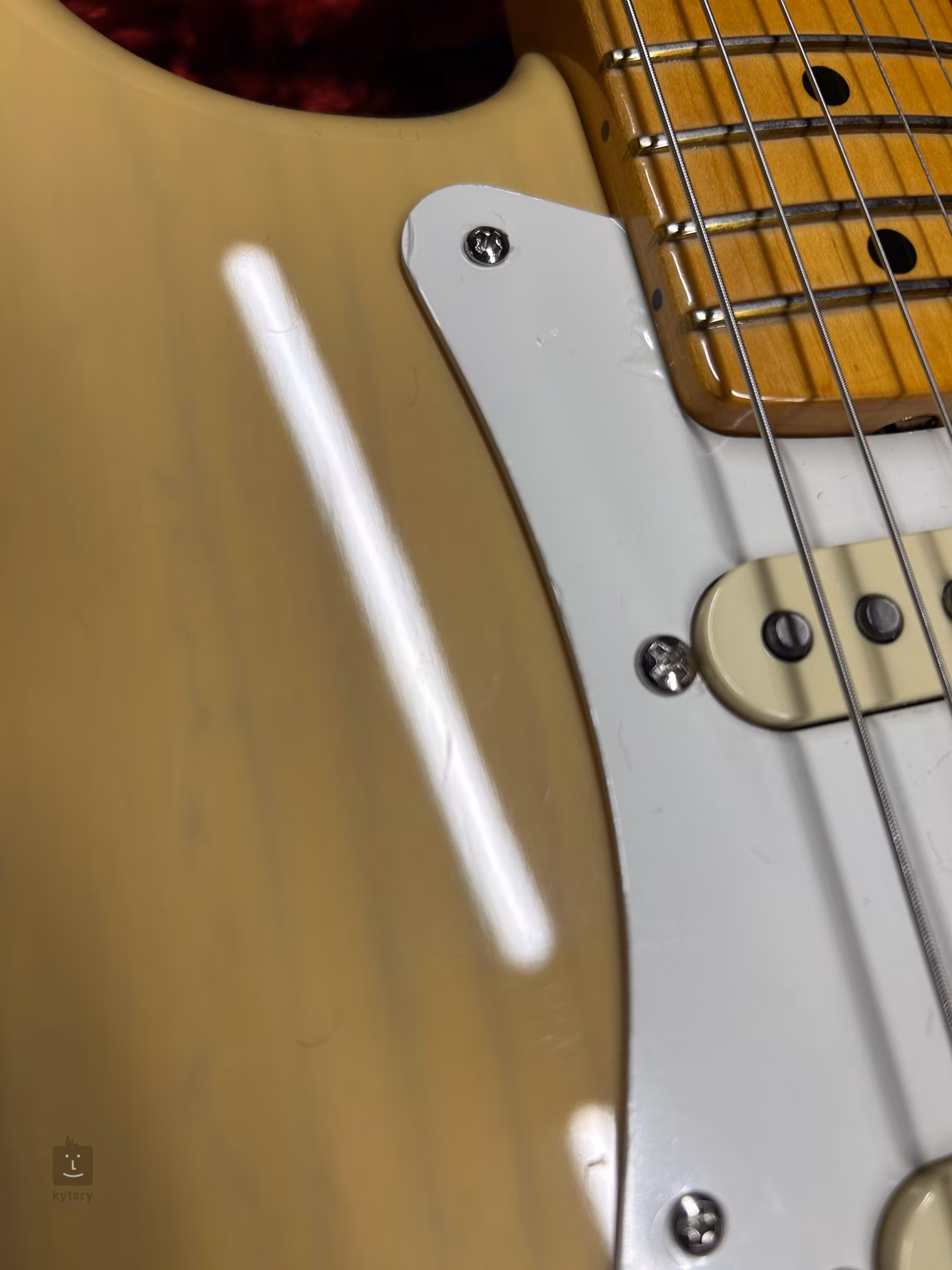 Pure Vintage '57 Stratocaster-Tonabnehmer verleihen der Gitarre einen authentischen Klang und ein authentisches Spielgefühl. Der Charakter des Tons kann mit einem Lautstärkepotentiometer, zwei Tonreglern und einem Fünf-Positionen-Kippschalter eingestellt werden. Die Saiten sind in Pure Vintage Single Line "Fender Deluxe" Stimmmechaniken und einem synchronisierten Tremolo mit Stahlblock und Stahlsätteln untergebracht. Die stilvolle Verarbeitung wird durch das einlagige Schlagbrett akzentuiert.
