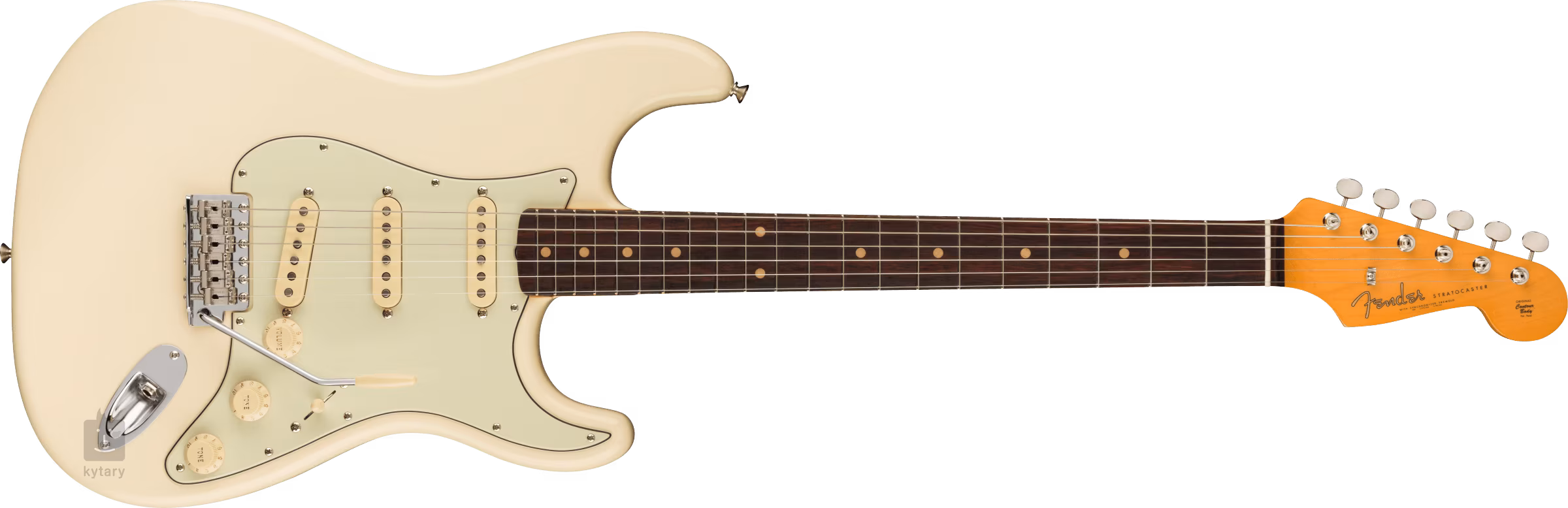 Pure Vintage '61 Single-Coil Strat-Tonabnehmer verleihen der Gitarre einen authentischen Klang und ein authentisches Spielgefühl. Der Klangcharakter kann mit einem Lautstärkepotentiometer, zwei Klangreglern und einem fünfstufigen Kippschalter eingestellt werden. Die Saiten sind in Pure Vintage Single Line "Fender Deluxe" Stimmmechaniken und einem synchronisierten Tremolo mit Stahlblock und Stahlsätteln untergebracht. Die stilvolle Verarbeitung wird durch ein dreilagiges Schlagbrett akzentuiert.