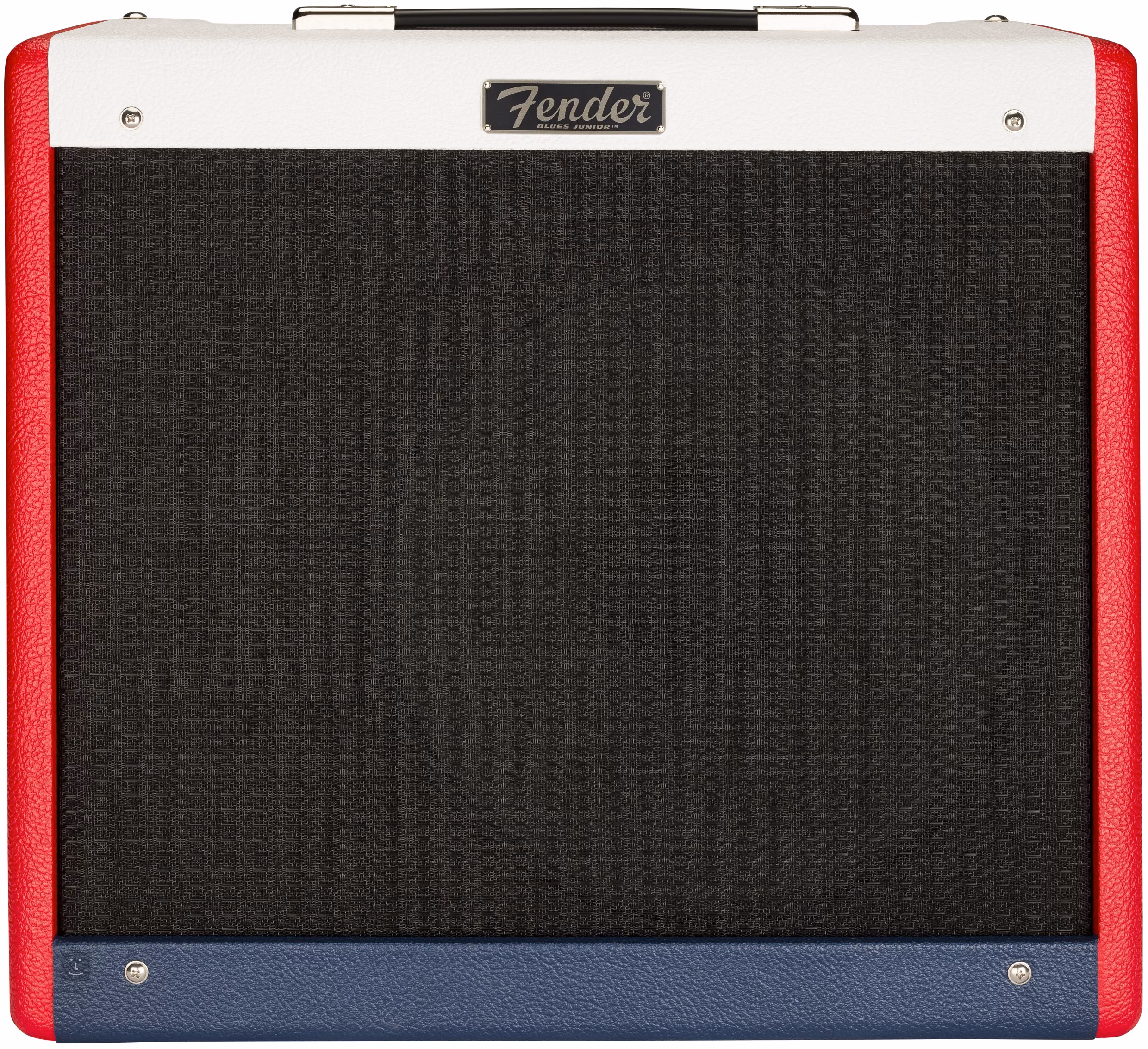 Die limitierte Auflage des Röhrenverstärkers Blues Junior IV Colour Trio FSR kommt nicht nur in einem neuen stilvollen Design mit einer Vinylbeschichtung in Blau, Rot und Weiß und einer schwarzen Frontblende, sondern bietet auch eine Änderung in Form eines modifizierten Vorverstärkerkreises und eines wärmeren Sounds des Federhallgeräts.