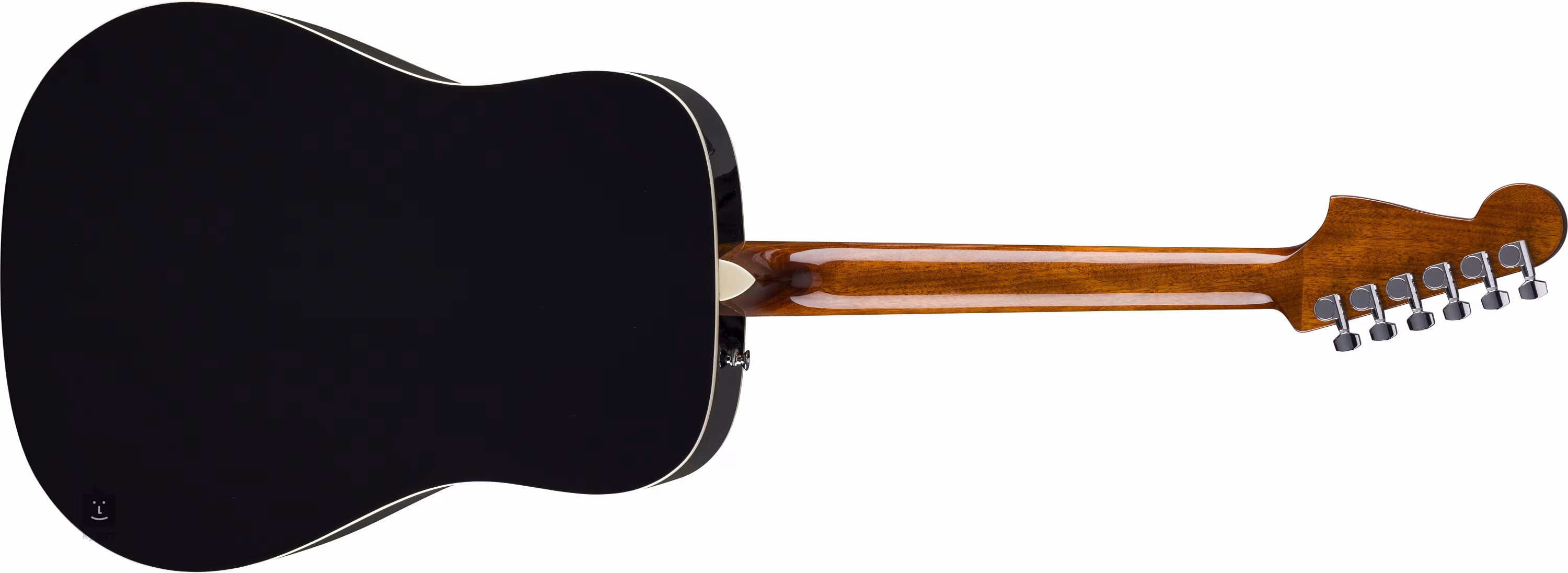 Die Saiten sind über den Nullbund aus Micarta-Verbundwerkstoff mit verchromter Druckgussmechanik und einem Griffbrett aus Walnussholz aufgezogen. Das stilvolle Finish wird durch die Kopfplatte im Jazzmaster-Design, das umlaufende Binding und das einlagige Schlagbrett aus Elfenbeinimitation akzentuiert.