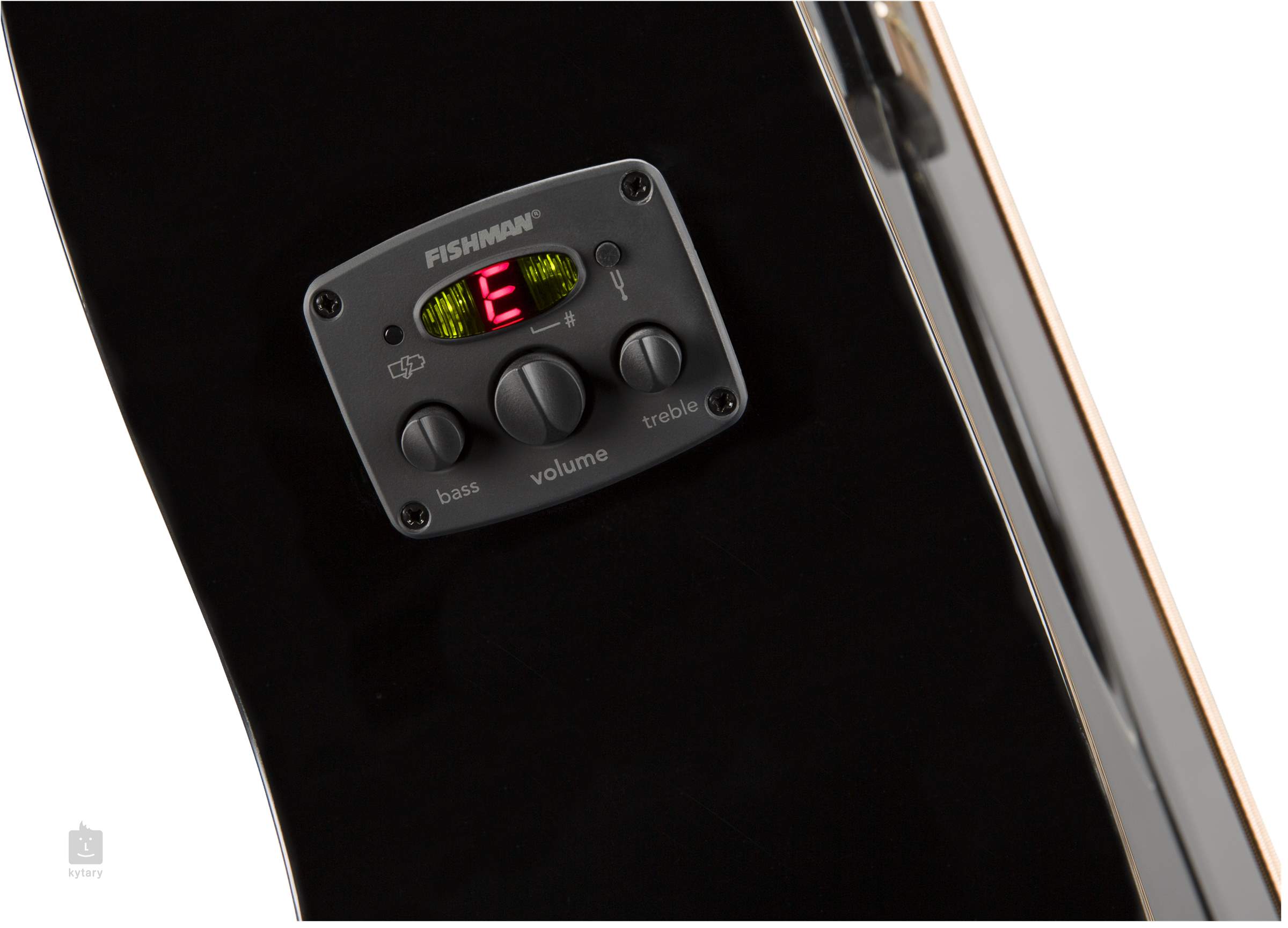 Für den Sound auf Konzertbühnen und im Studio sorgt der Fishman CD Preamp mit Lautstärkeregler, Zweiband-EQ und integriertem Stimmgerät. Die Saiten sind in das verchromte Druckguss-Chassis und den Walnuss-Saitenhalter der Firma eingebaut.