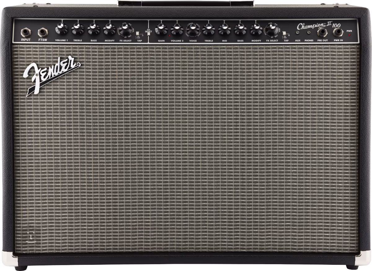 Der Fender CHAMPION II 100 Gitarren-Transistor-Combo ist die ideale Wahl für aufstrebende Gitarristen, um mit einer Band zu proben und aufzutreten. Er ist ein Zweikanal-Combo mit 100 W Leistung und wählbaren Sound-/Voicing-Einstellungen für den zweiten Kanal, der sowohl cleane Töne als auch rockigere Overdrive- und Metal-Verzerrungen bietet. Einfach von Jazz, Country und Blues bis hin zu Rock und Metal.