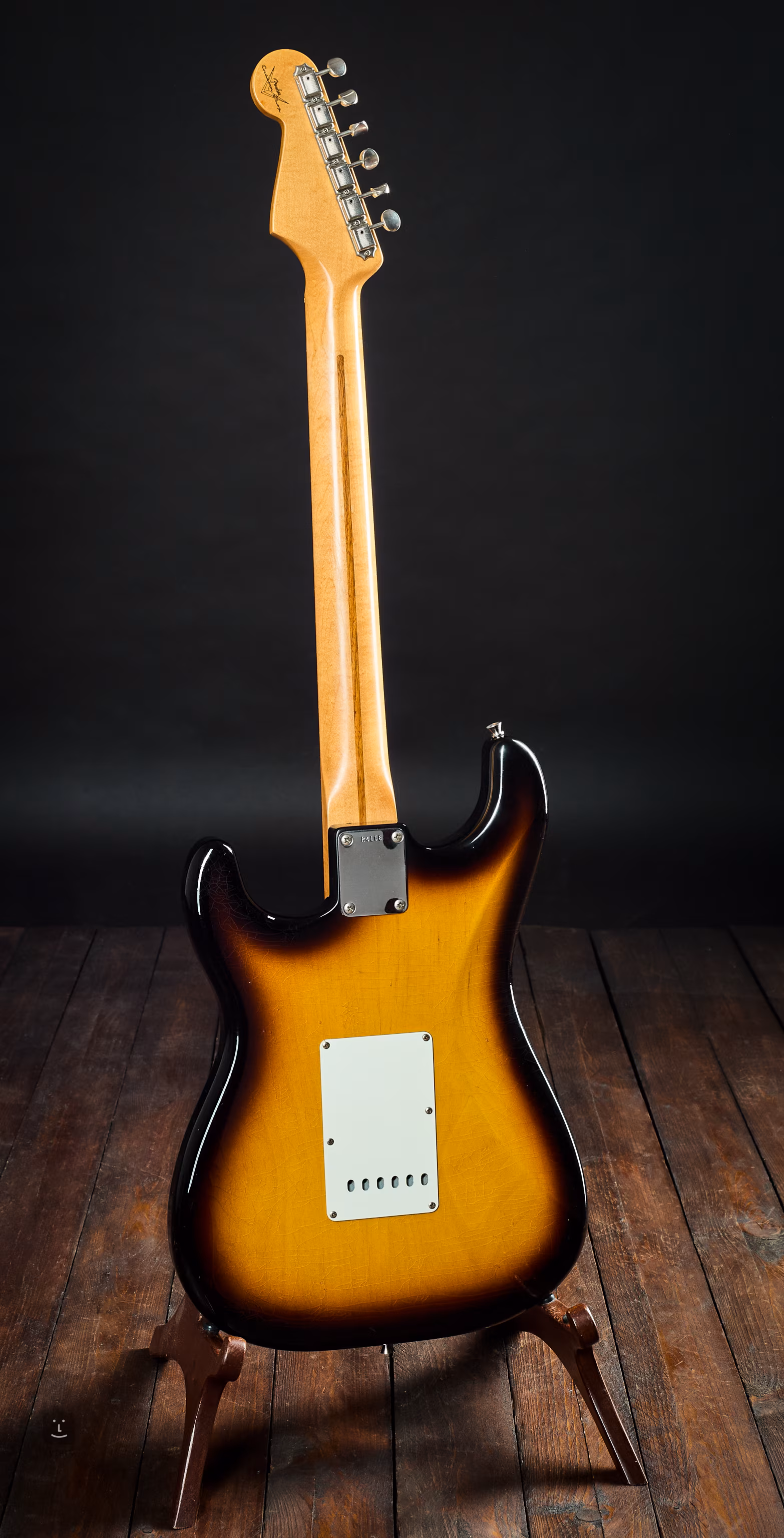 Die Gitarre hat ein paar kleine Stöße (eingeschlagene Stücke des Closet Classic Lacks, die verfärbt sind). Ansonsten ist das Instrument in perfektem Zustand. Die Gitarre hatte lange Zeit Tonabnehmer anderer Marken eingebaut, der letzte Besitzer hat sie durch original Fender Custom Shop Fat 50s ersetzt - sie sind also original, nur neu.