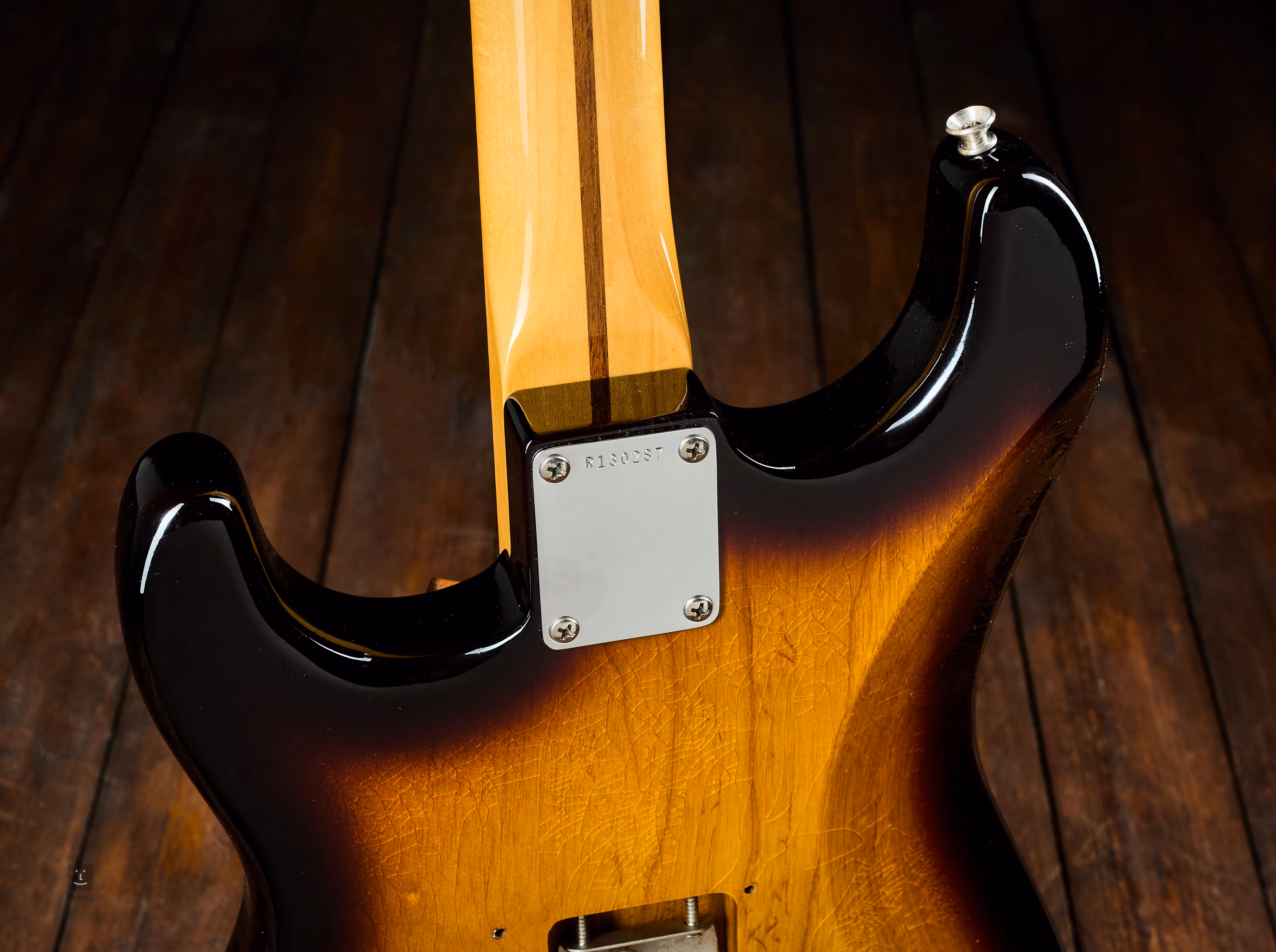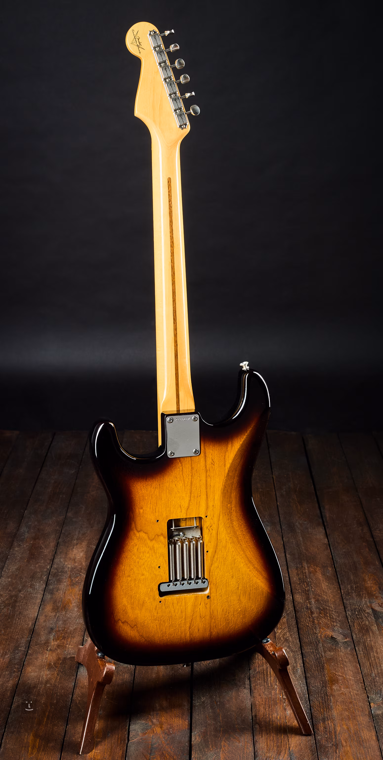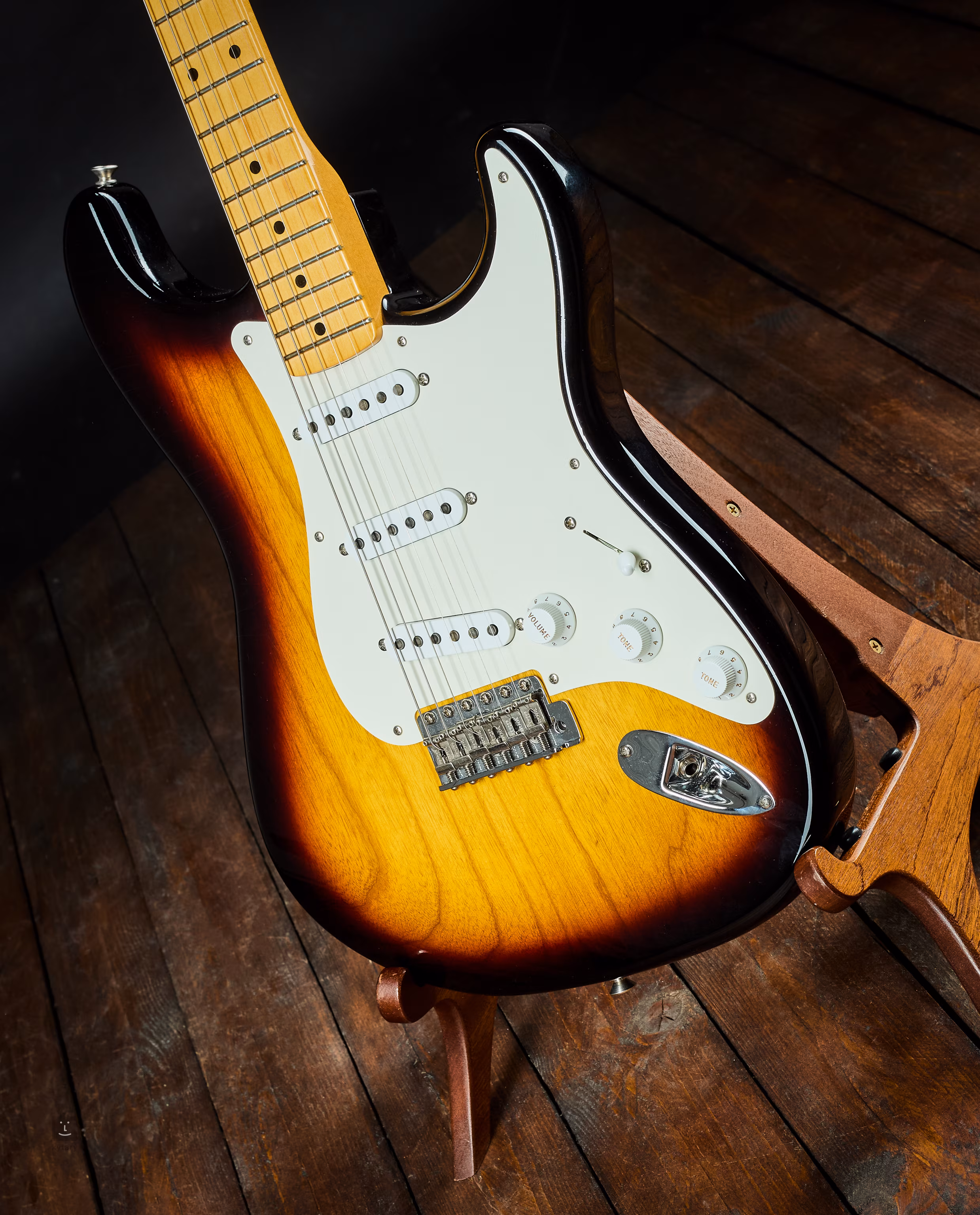 Diese 1955er Stratocaster im Deluxe Closet Classic (LCC)-Finish stammt bereits aus dem Fender Custom Shop und ist ein dezent patiniertes Instrument mit kleinen Scheinrissen, die zusammen mit den verwendeten Materialien und den zeitgemäß gewickelten Tonabnehmern die Atmosphäre der 1950er Jahre heraufbeschwören, als dieses legendäre E-Gitarrenmodell entstand, das die Welt der Pop- und Rockmusik definierte.