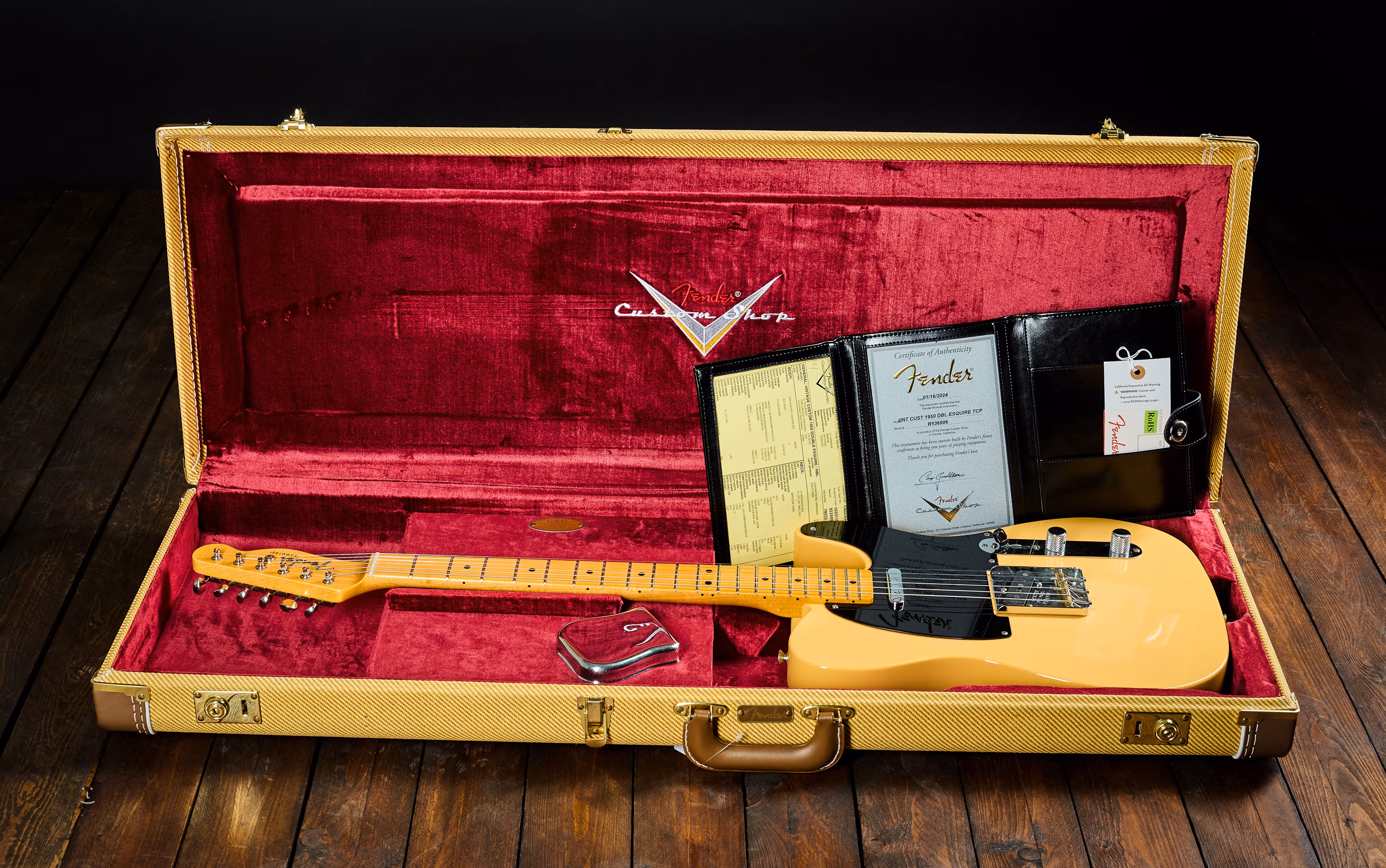 Bevor die Telecaster 1951 die Form und Richtung der modernen Musik völlig veränderte, fertigte Leo Fender mehrere verschiedene Prototypen, die ihren Weg zum Endkunden fanden. Die Vintage Custom 1950 Double Esquire E-Gitarre aus dem Fender Custom Shop ist eine Nachbildung eines dieser frühen Modelle. Es handelt sich um ein Instrument, das nach denselben Spezifikationen wie die Vintage-Originalmodelle hergestellt wurde, einschließlich der NOS-Lackierung (New Old Stock).