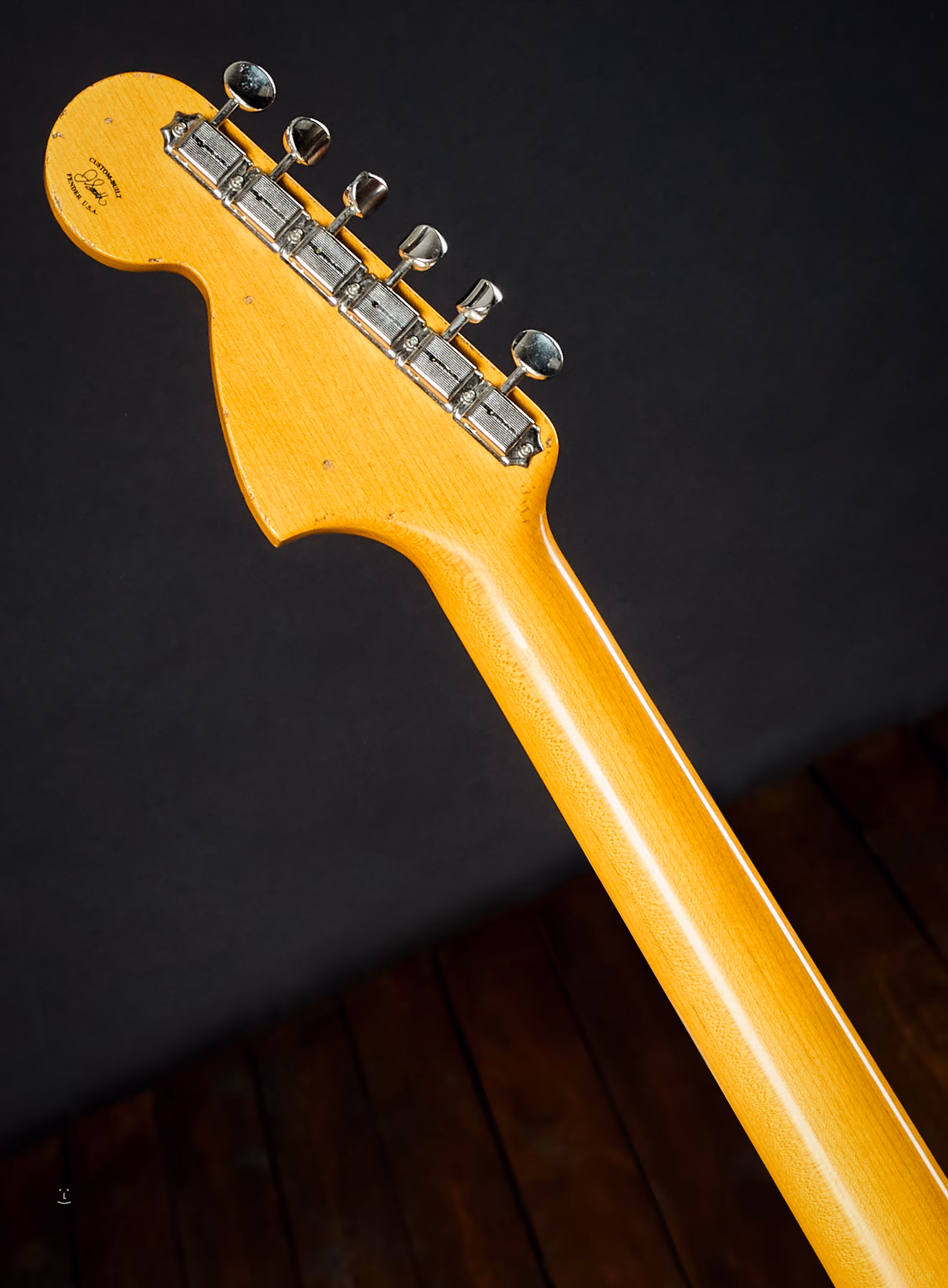 Der Body besteht aus zwei Teilen Erle. Lackierung: Teal Green Metallic, dazu ein authentisches Relic-Finish mit künstlicher Patina in Form von kleinen Abrieben, Kratzern und „Narben“ – kurz: eine neue Gitarre, die wirkt, als hätte sie schon etliche Club- und Bar-Gigs hinter sich. Für noch mehr Glaubwürdigkeit sorgt Closet Classic Hardware: dezente Oxidation der Metallteile und leichtes Ausbleichen der Kunststoffteile. Der Ahornhals bietet das zeittypische 66 Strat Oval C Profil. Das Griffbrett hat 21 Narrow Tall Bünde (6105) sowie Front- und Side-Dots aus Micarta. Drei handgewickelte Strat 65 Singlecoils (Josefina Campos) liefern den typischen Strat-Sound und das entsprechende Spielgefühl.