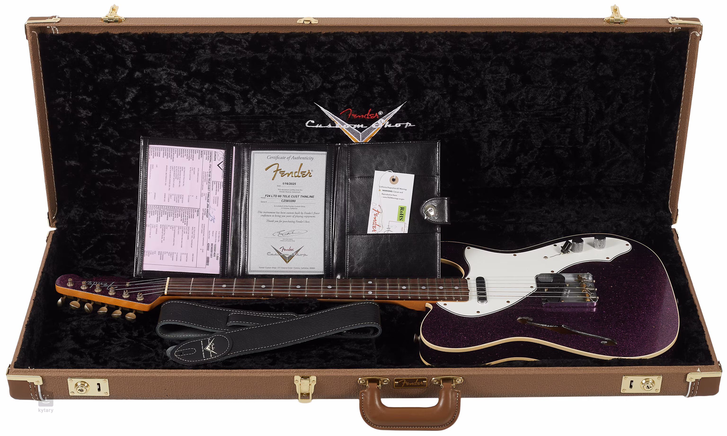 Die Gitarre wird in einem Koffer zusammen mit einem Gurt und einem Echtheitszertifikat geliefert.
